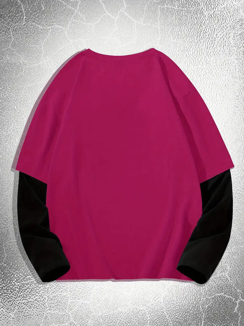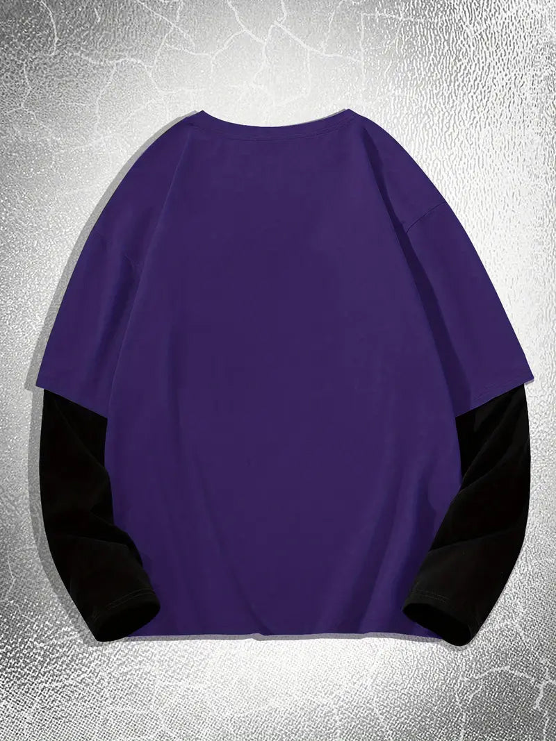 Big & Tall Men's Religious Thorn Head Printed Fake Two Long Sleeve T-Shirts