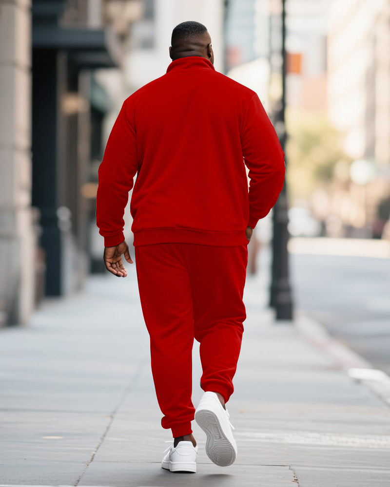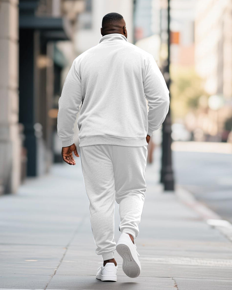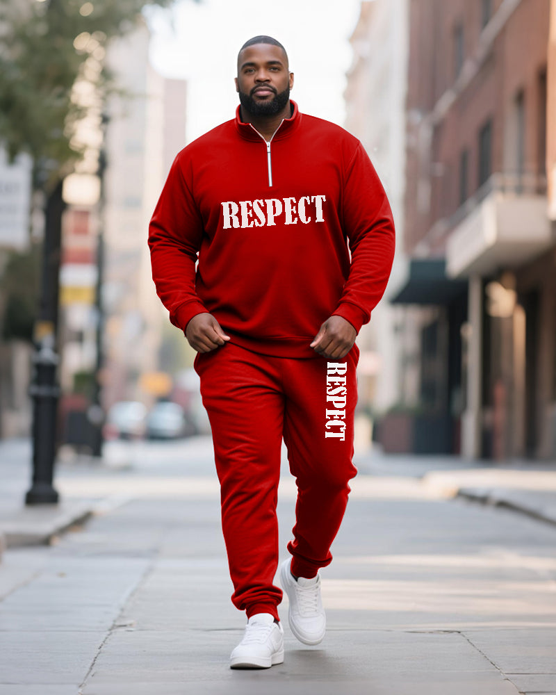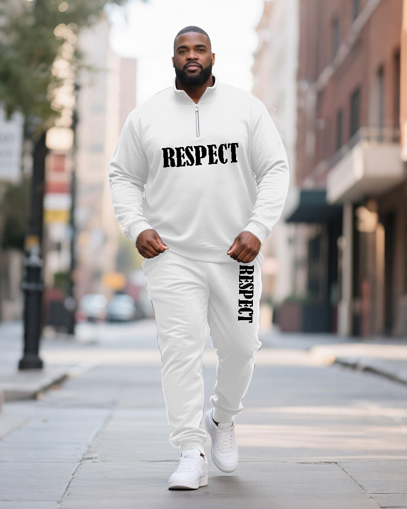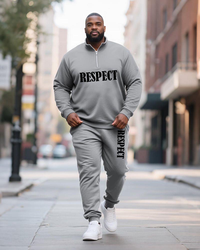 Big & Tall Men's RESPECT Solid Color Printed POLO Collar Zipper Long Sleeve Pants Two-Piece Set