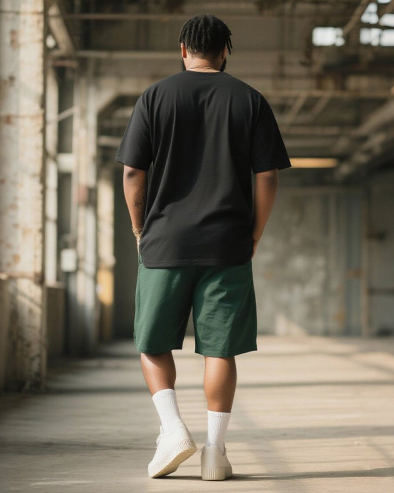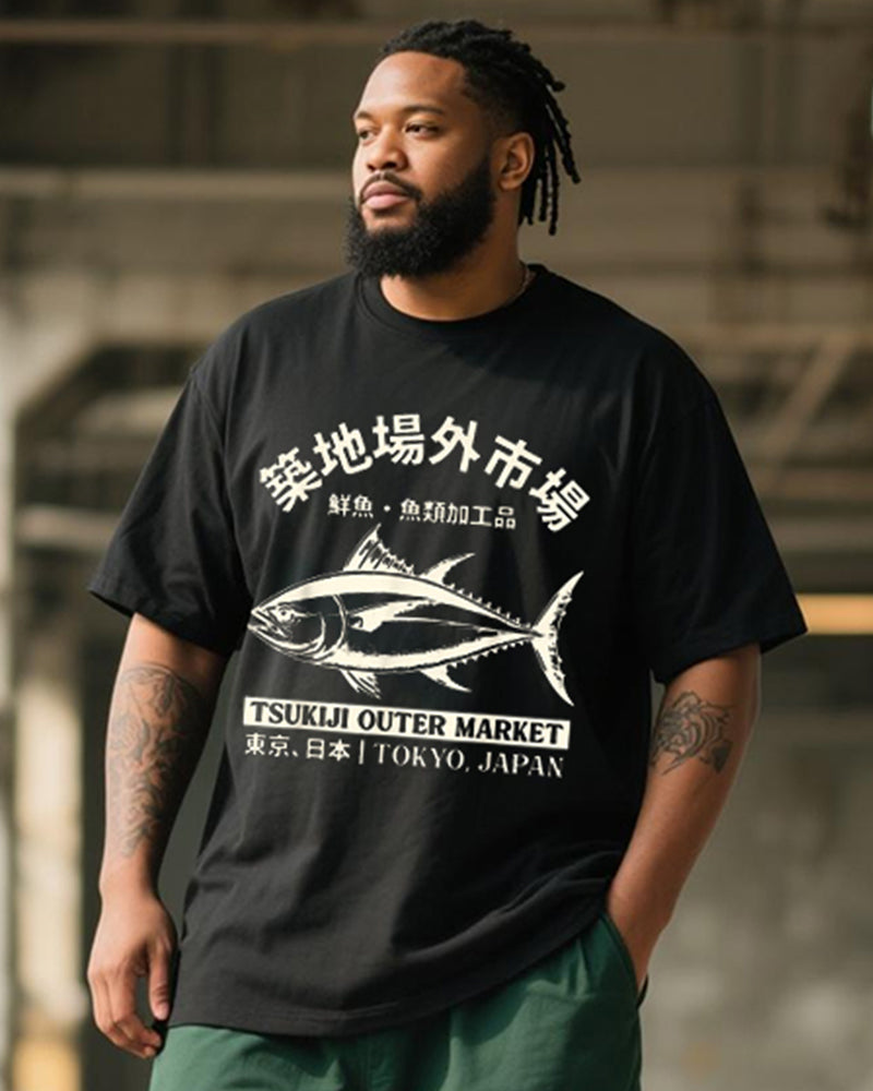 Big & Tall Men's Retro Japan Tokyo Tsukiji OTC Market Printed Round Neck Short Sleeve T-Shirt Shorts Suit