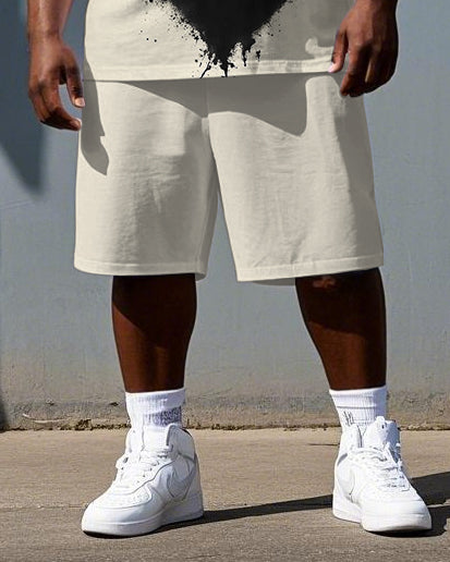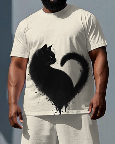 Big & Tall Men's Romantic Cat with Heart Print Casual Short-Sleeve T-shirt 2-Piece Set