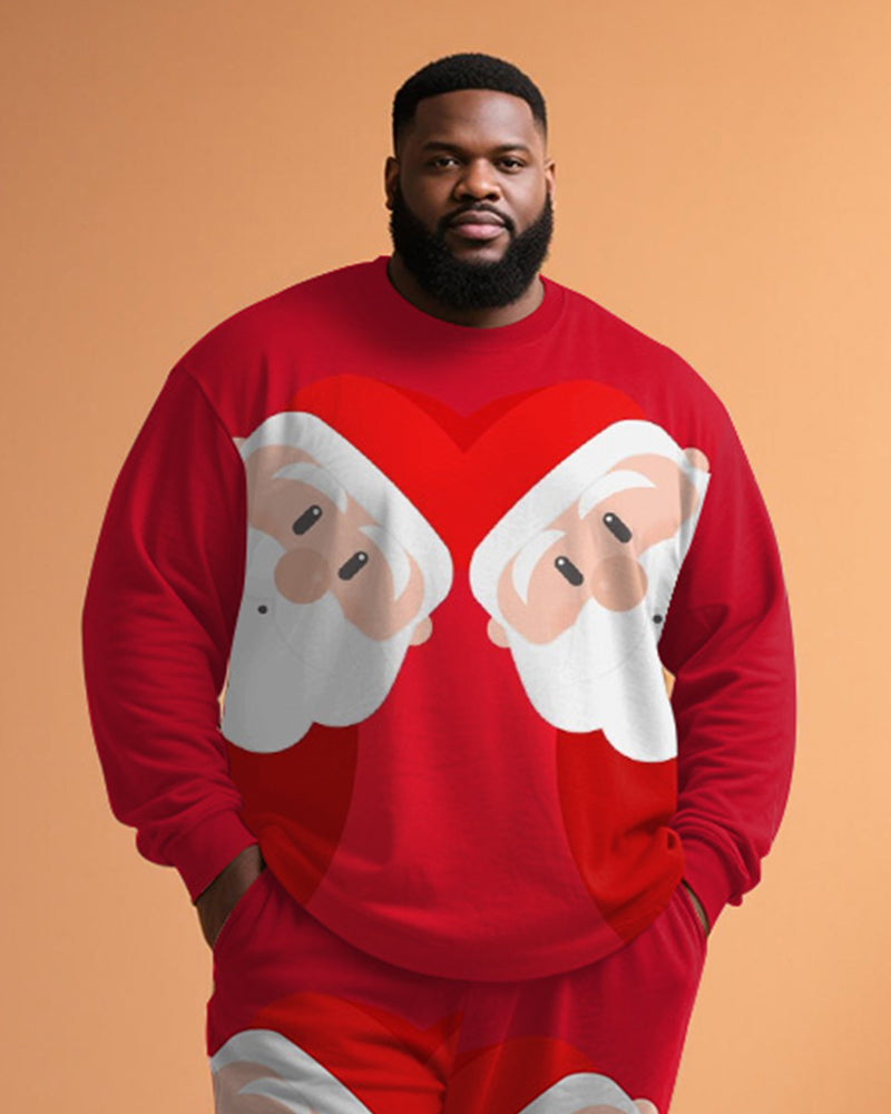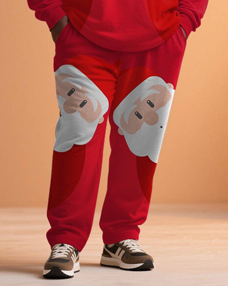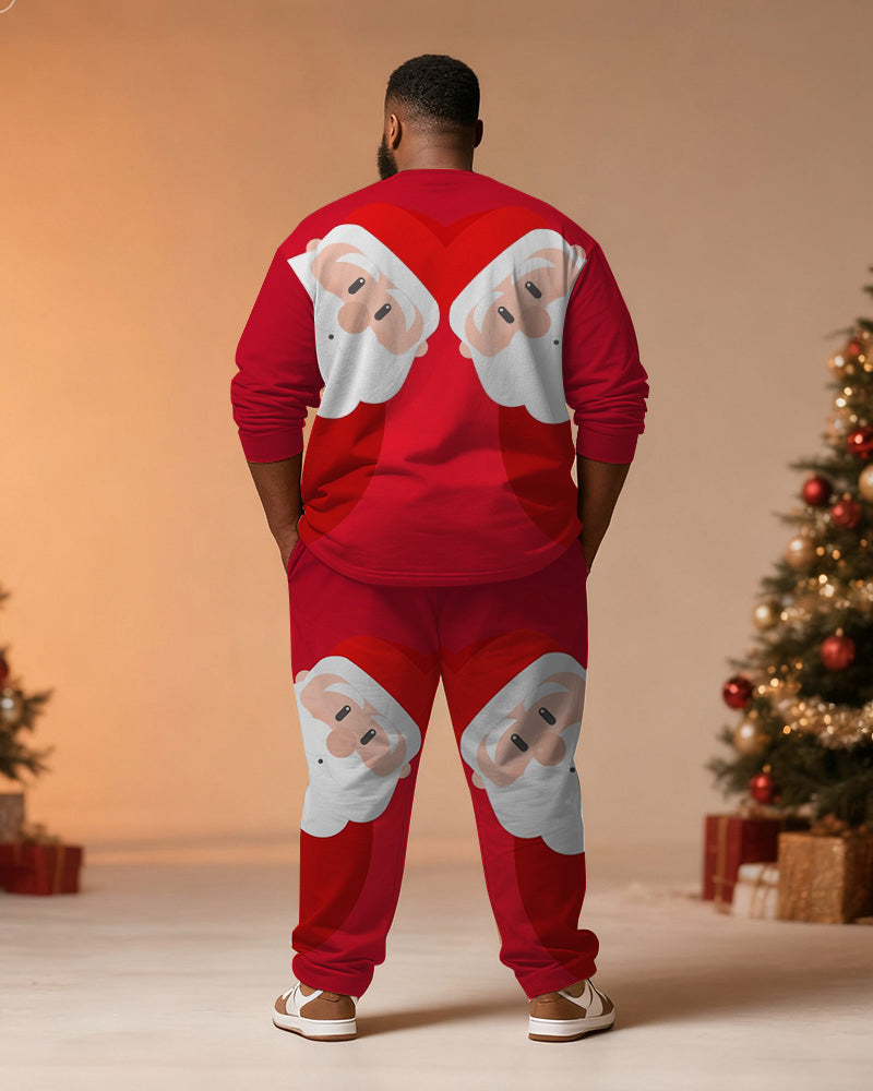 Big & Tall Men's Santa Claus Cartoon Graffiti Print Long Sleeve T-Shirt Pants Set