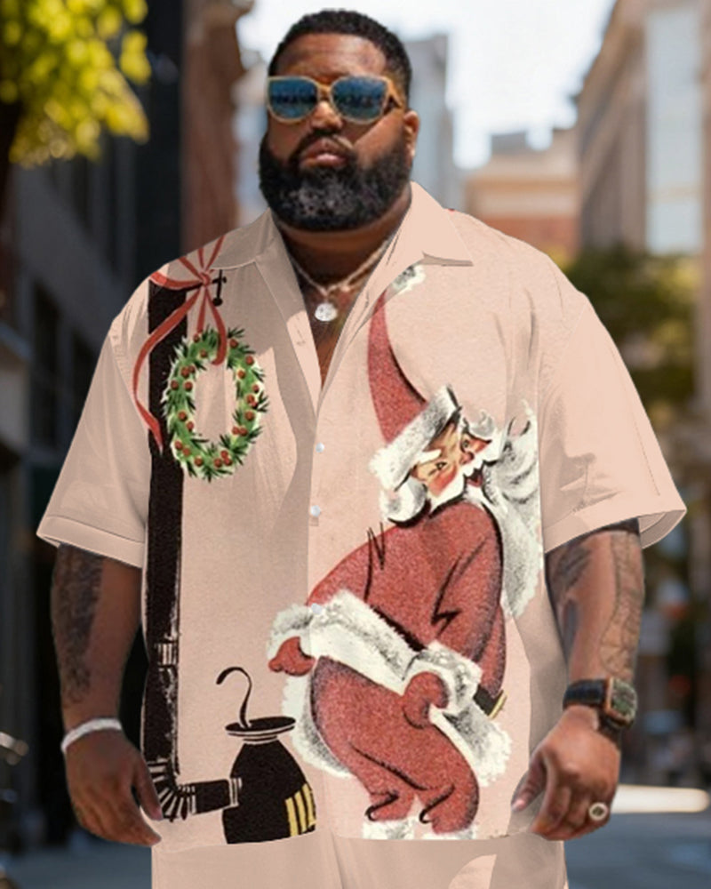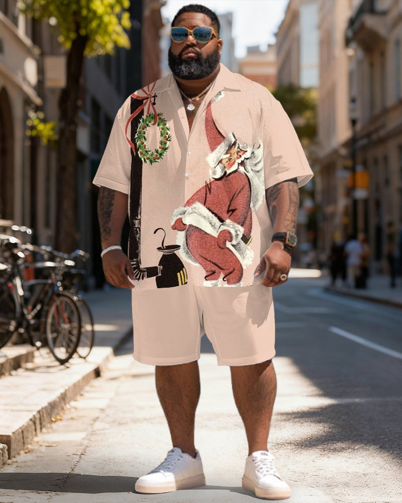 Big & Tall Men's Santa Claus Graffiti Funny Print Short Sleeve Shirt Shorts Set