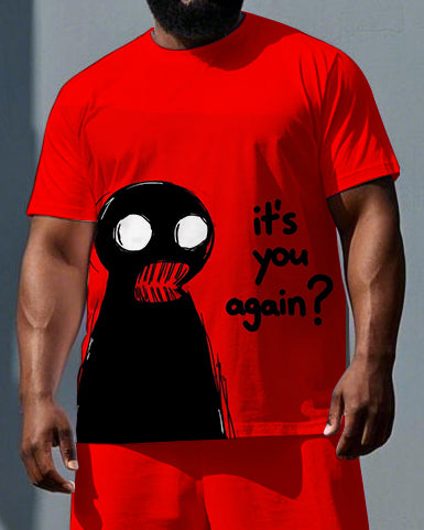 Big & Tall Men's Shocked Elf it's you again Print Punk Style Laid-back Short-Sleeve T-shirt 2-Piece Set