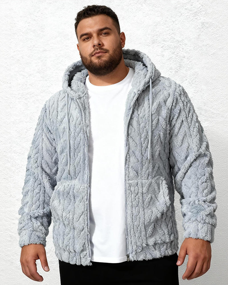 Big & Tall Men's Solid Color Mao Mao Twisted Hooded Jacket S-2XL