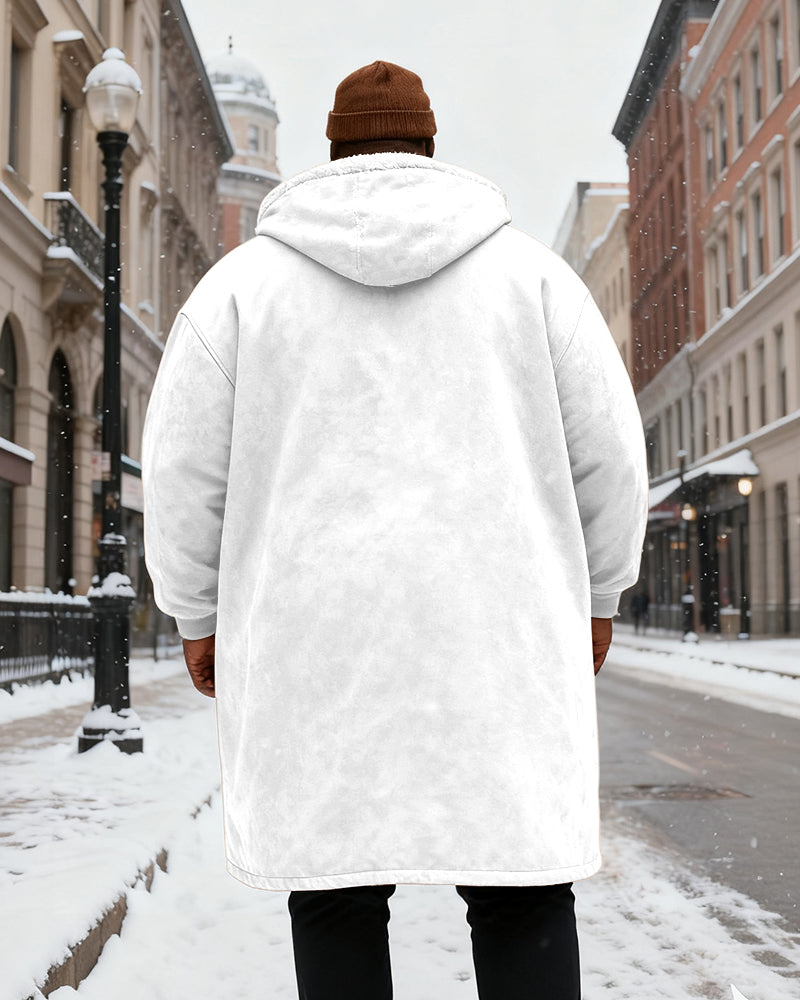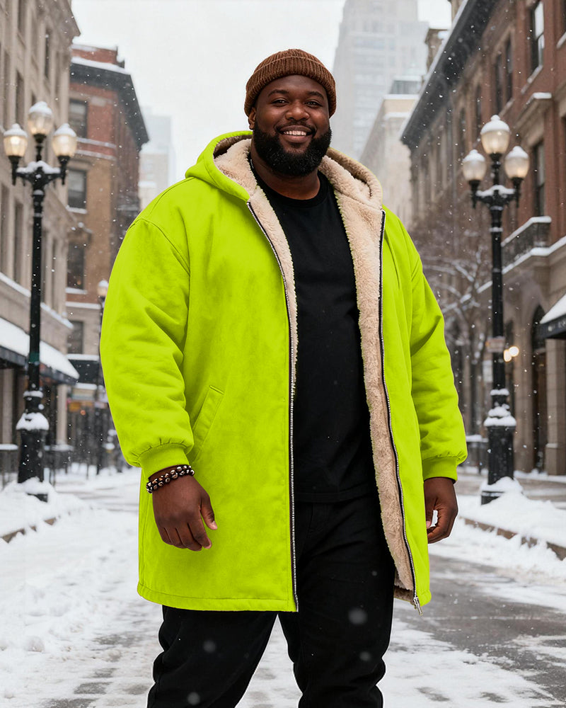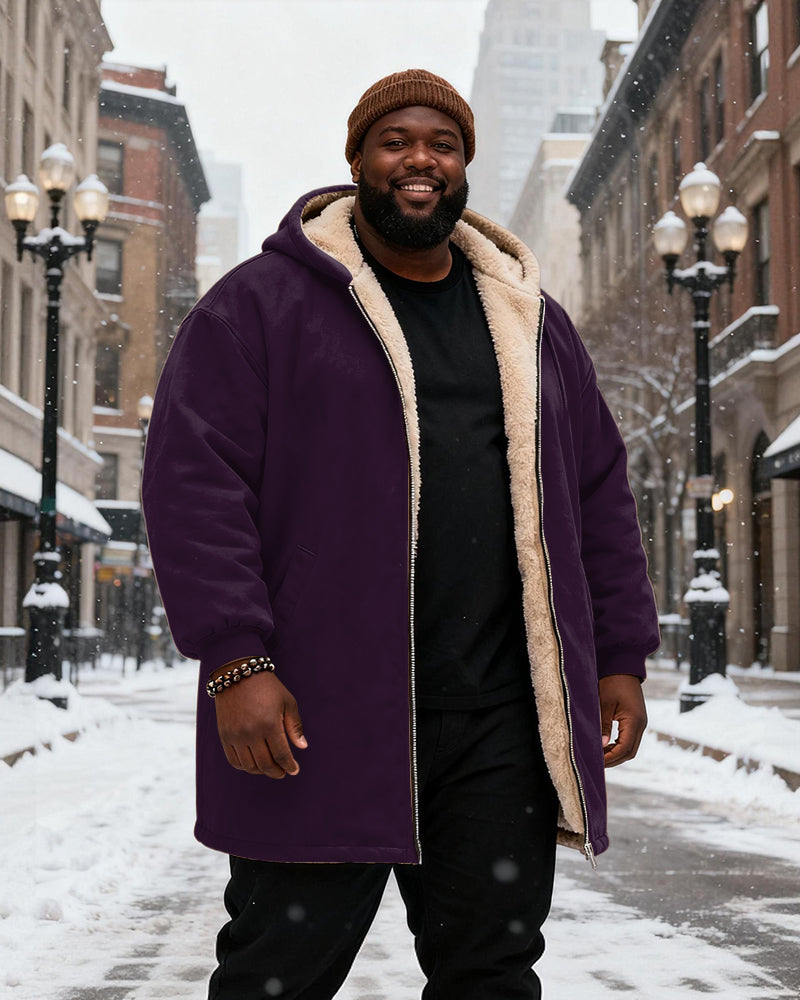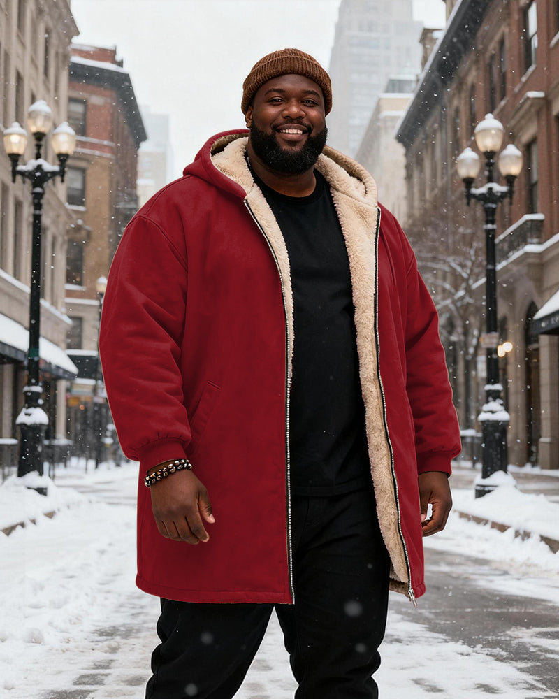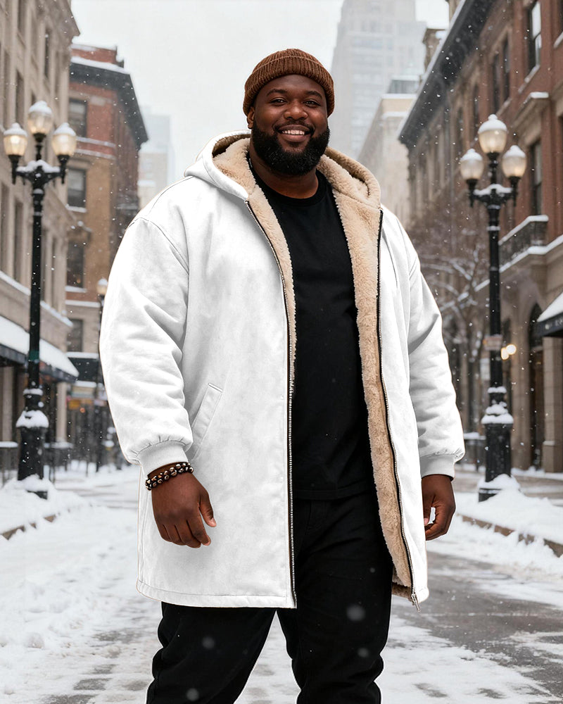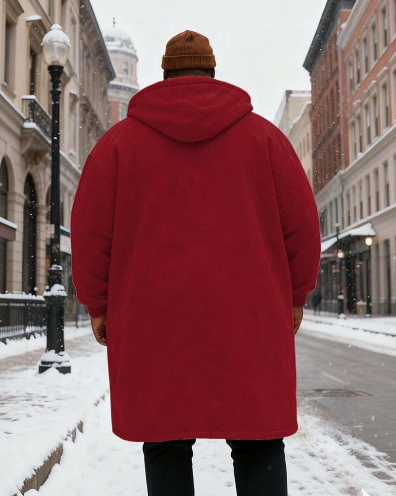 Big & Tall Men's Solid Color Velvet Thickened Long Hooded Coat