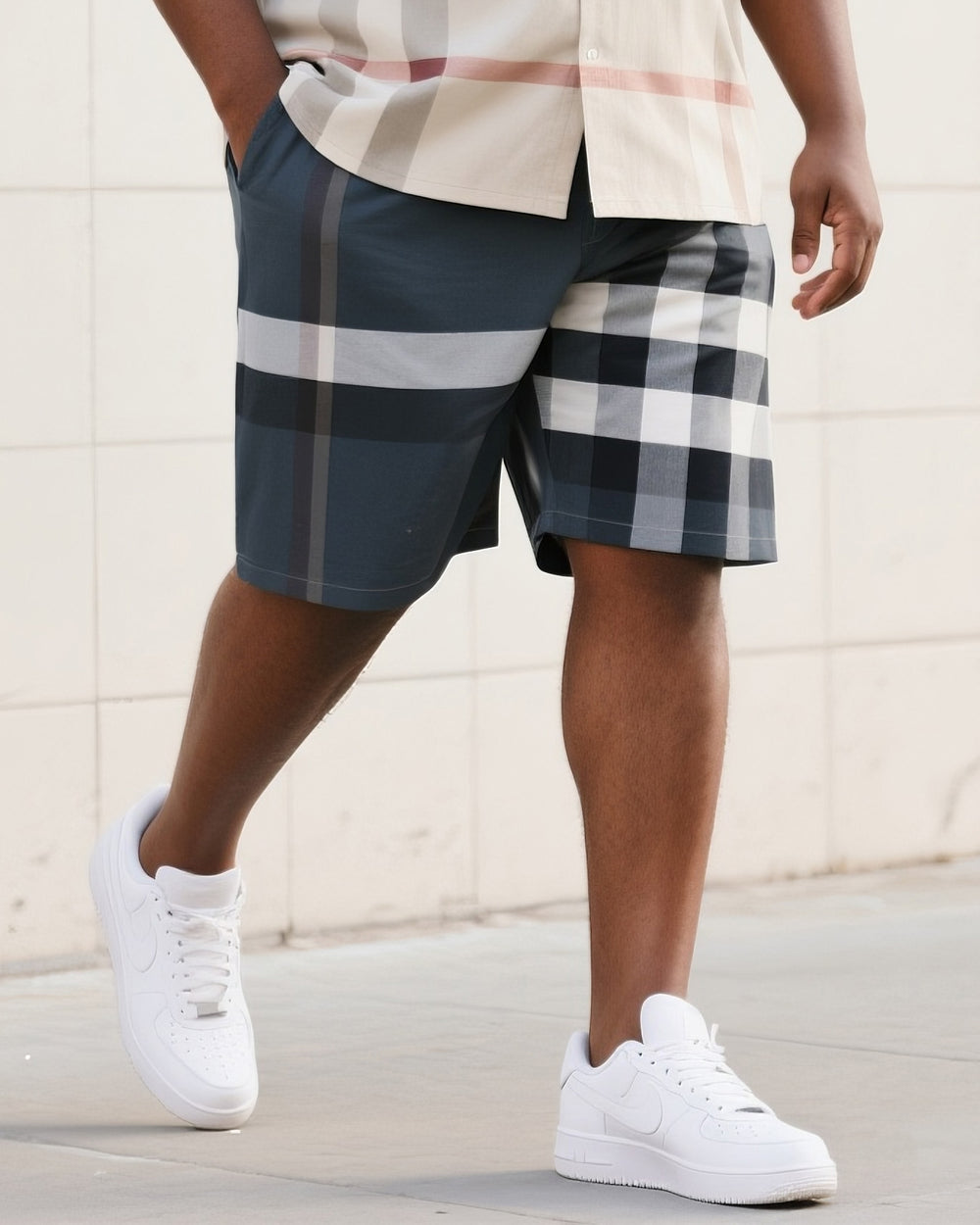 Big & Tall Men's Street Fashion Daily Casual Gradient Card Fuzzy Window Plaid Shirt Shorts Suit