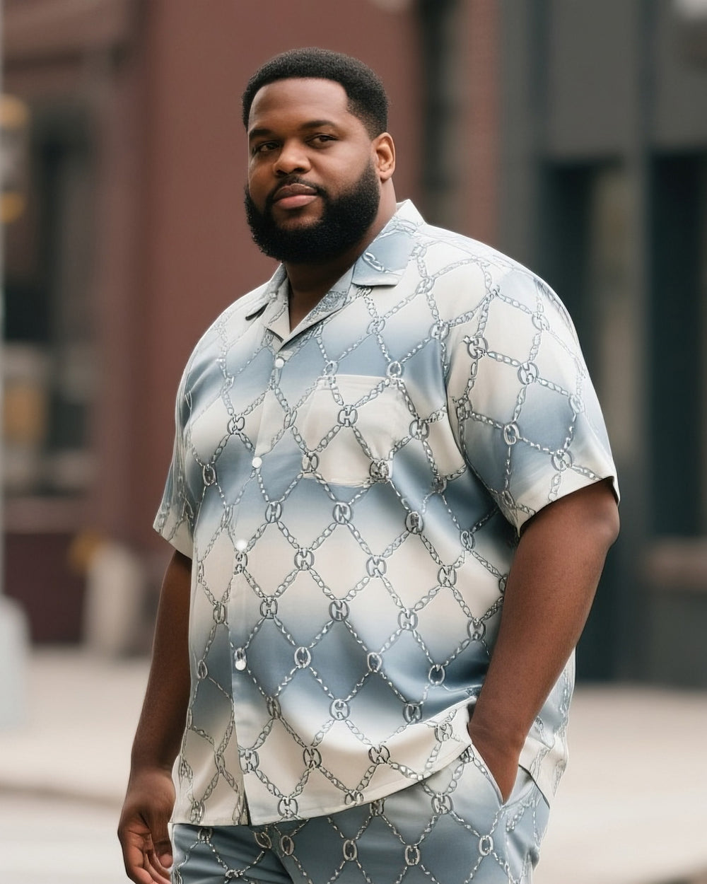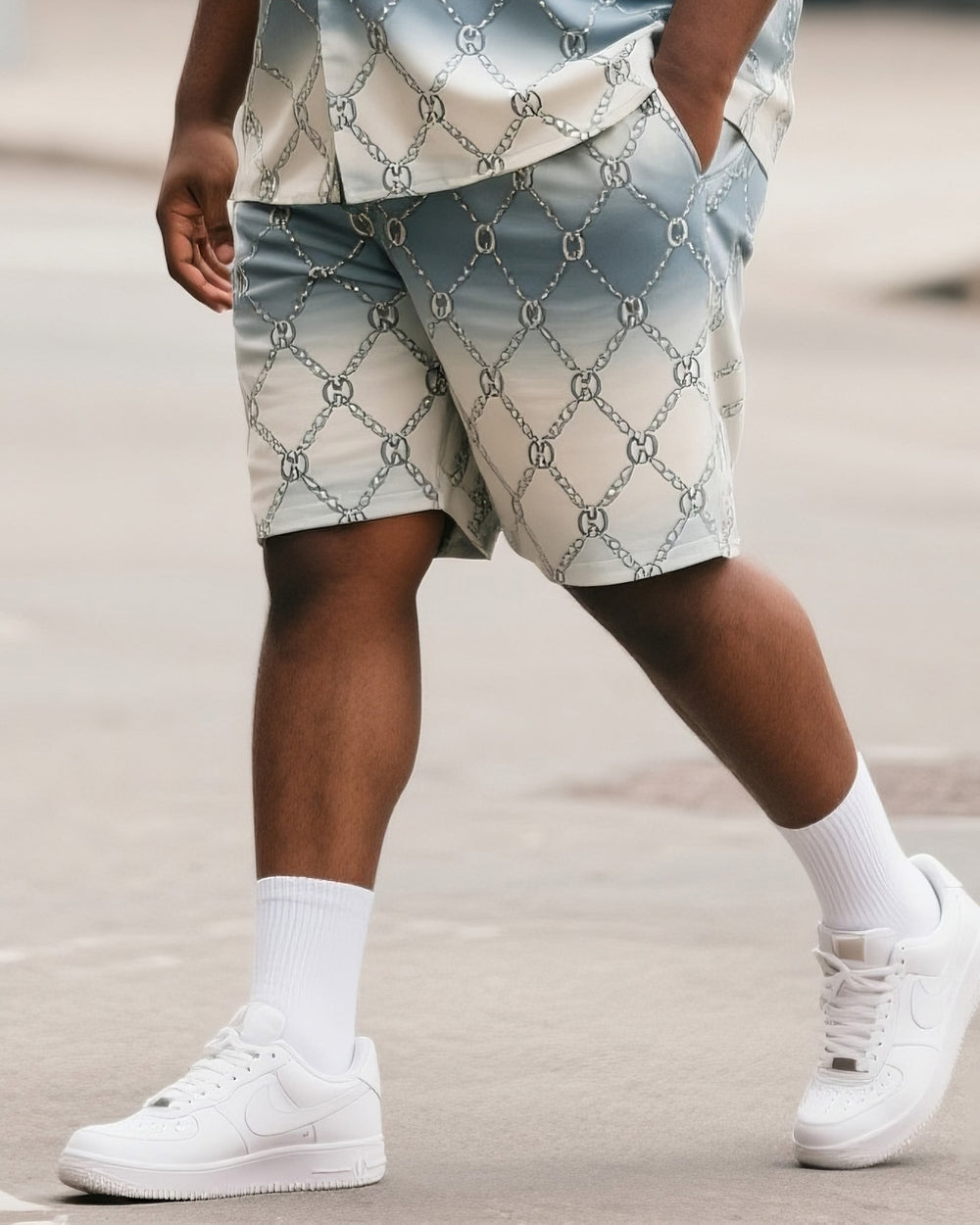 Big & Tall Men's Street Fashion Daily Casual Gradient Triangle Chain Lock Pattern Shirt Shorts Suit