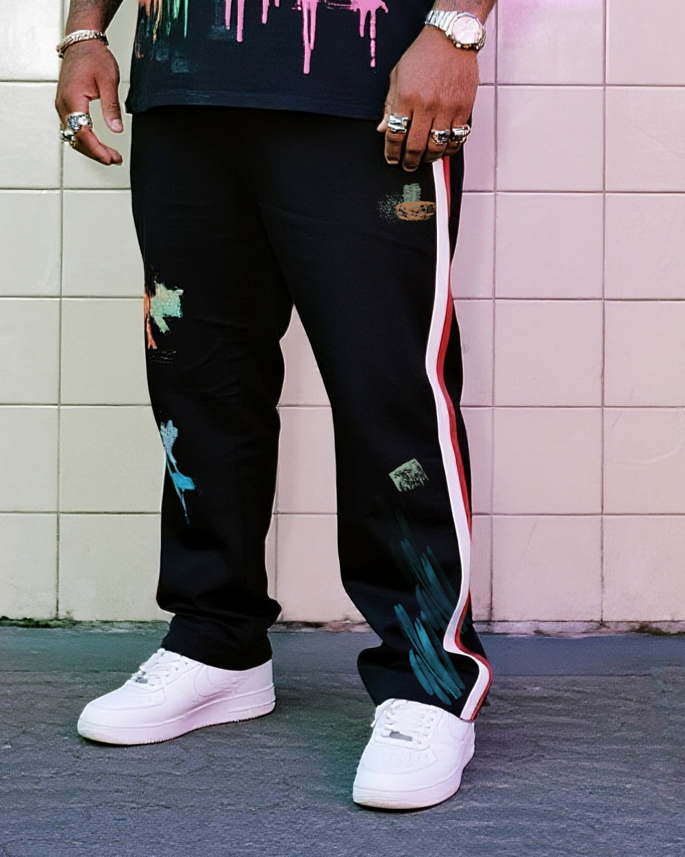 Big & Tall Men's Street Fashion Graffiti Short Sleeve Pants Suit