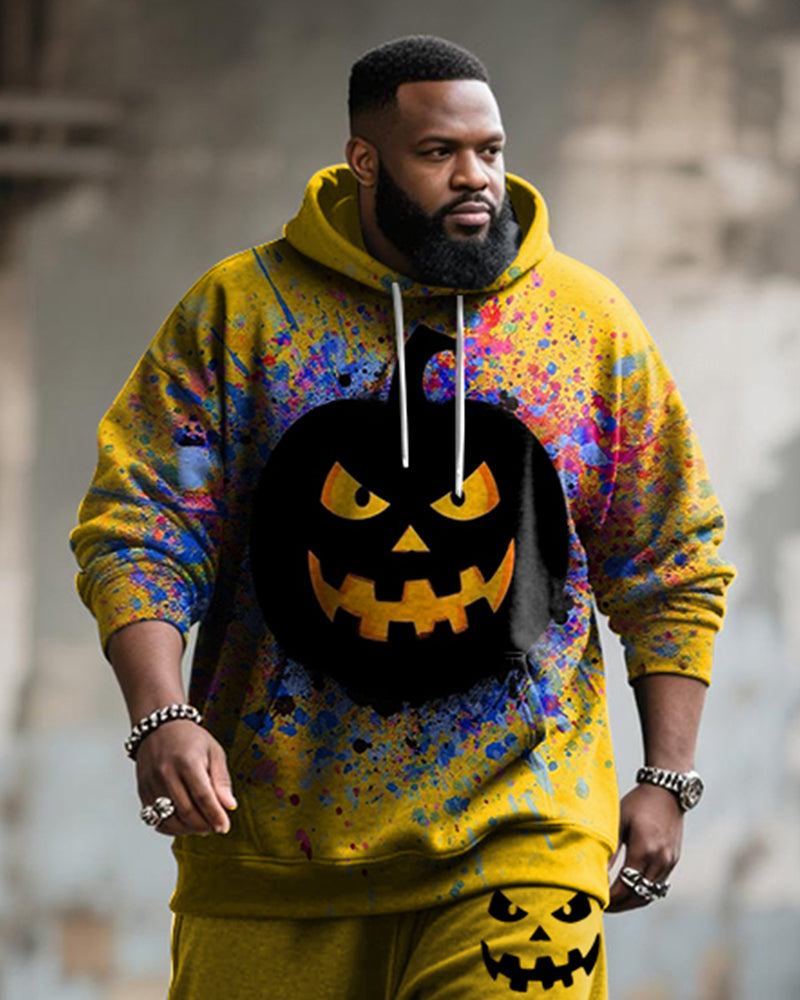 Big & Tall Men's Street Fashion Halloween Pumpkin Graffiti Print Hoodie Suit