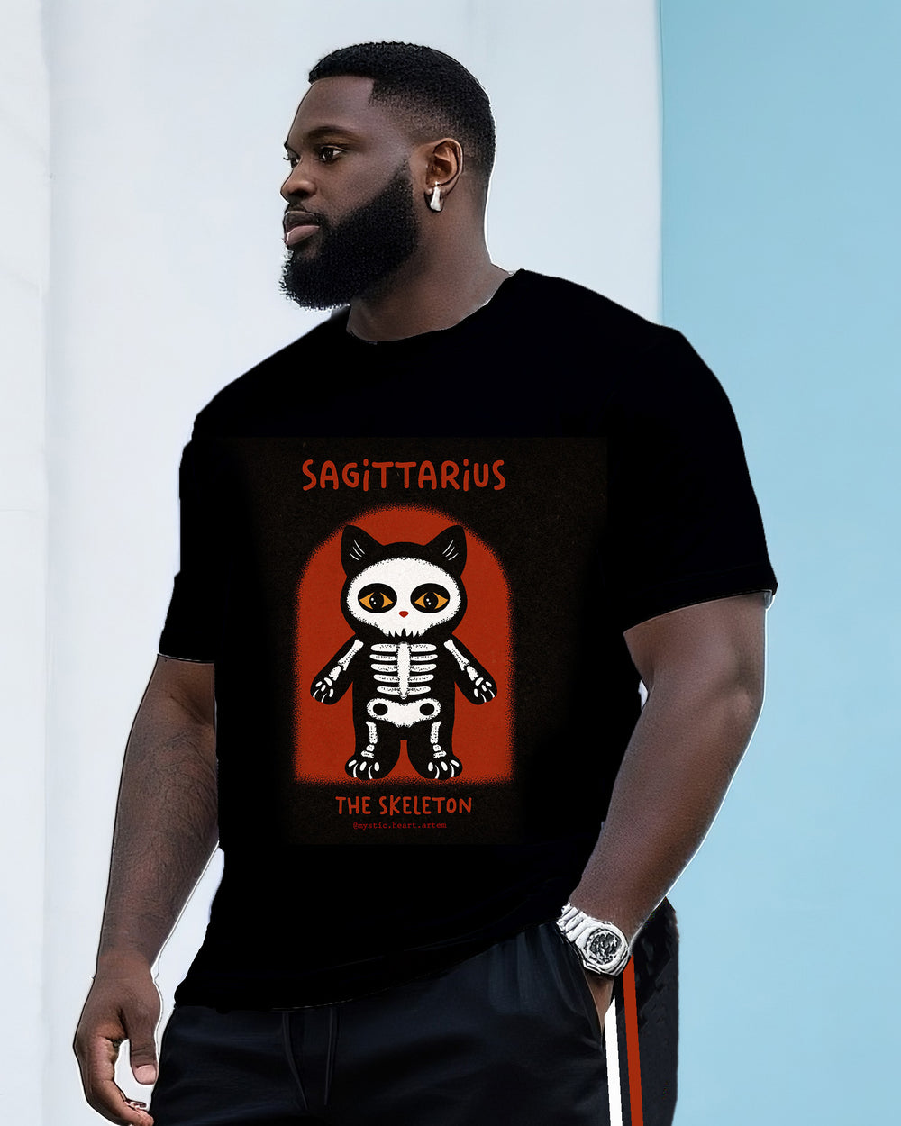 Big & Tall Men's Street Fashion Halloween Skull Raccoon Crewneck T-Shirt Shorts Suit