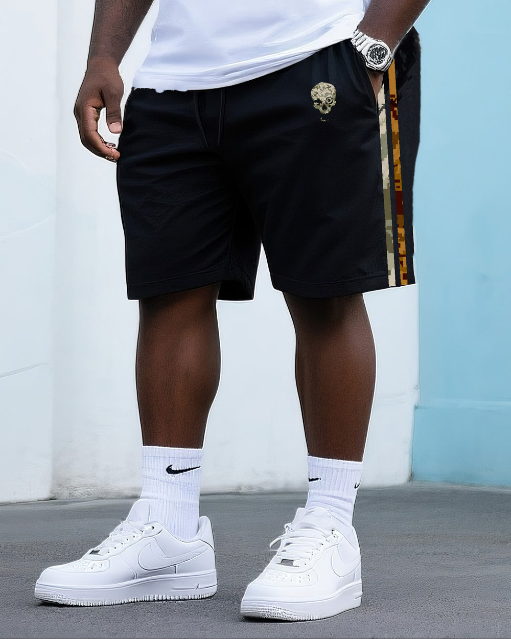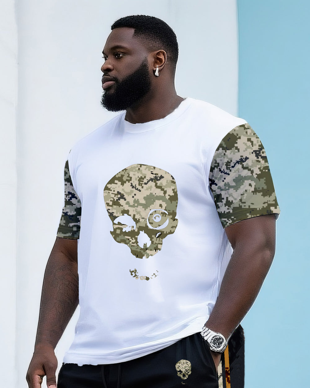 Big & Tall Men's Street Fashion Man Smell Camouflage Horror Skull Crewneck T-Shirt Shorts Suit