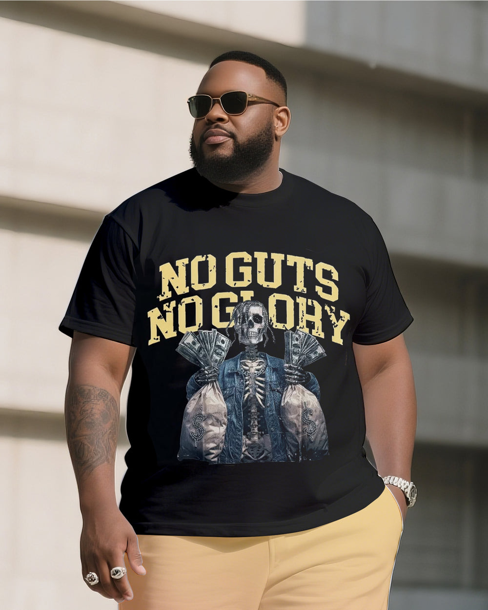 Big & Tall Men's Street Fashion No Guts No Glory Skull Print Crewneck T-Shirt Shorts Suit