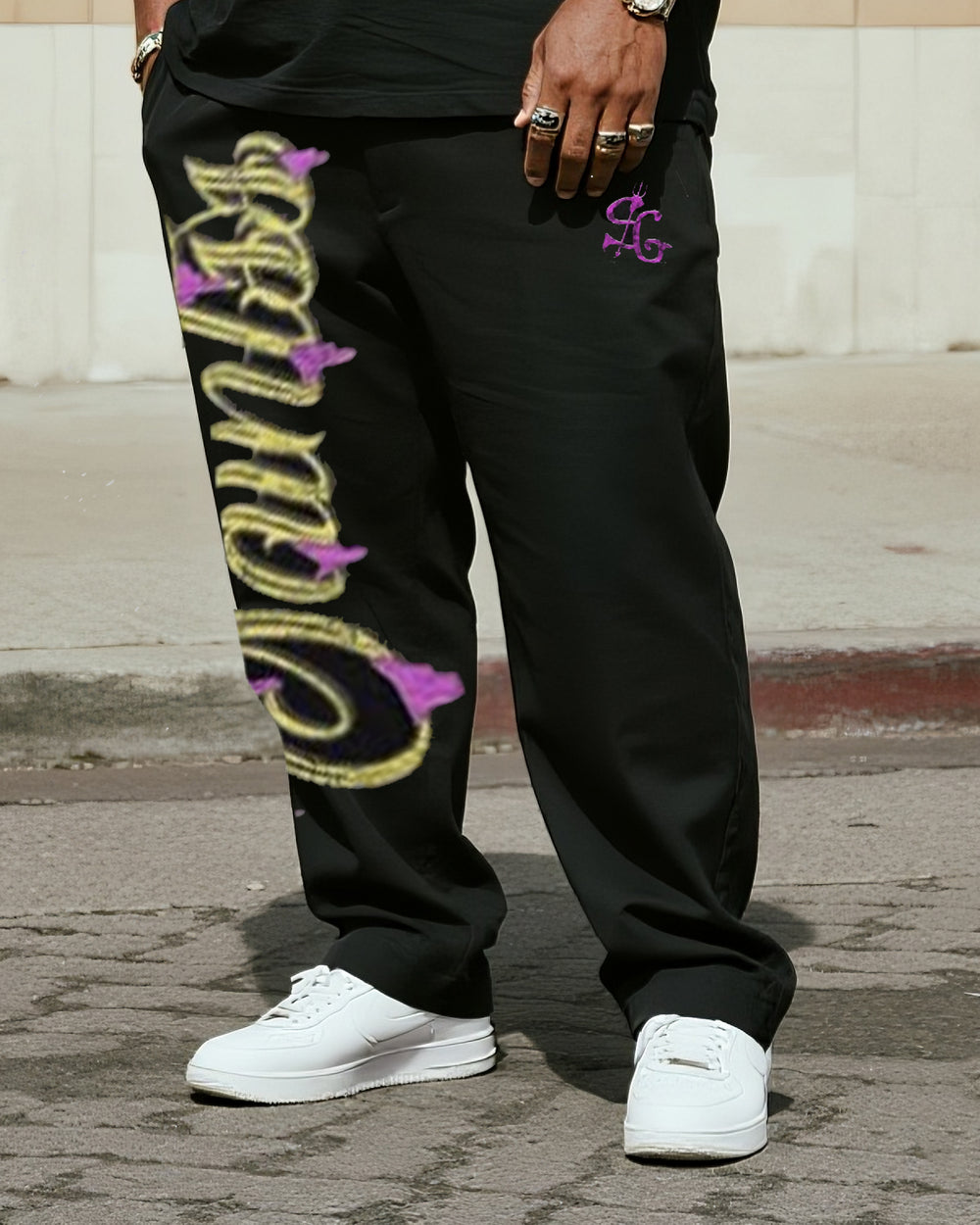 Big & Tall Men's Street Fashion Sequins Original Design-Short Sleeve Pants Suit