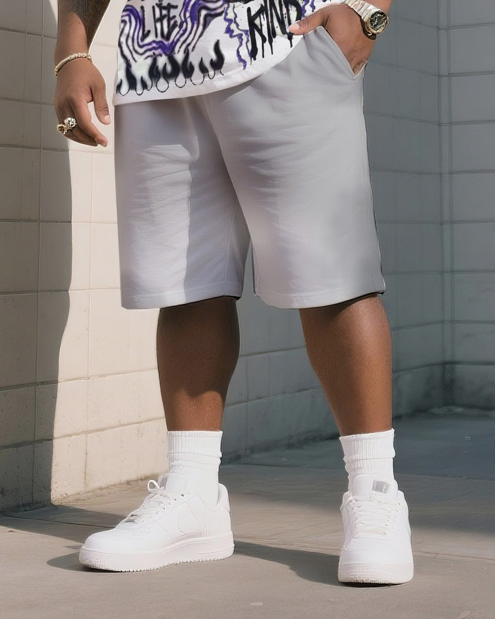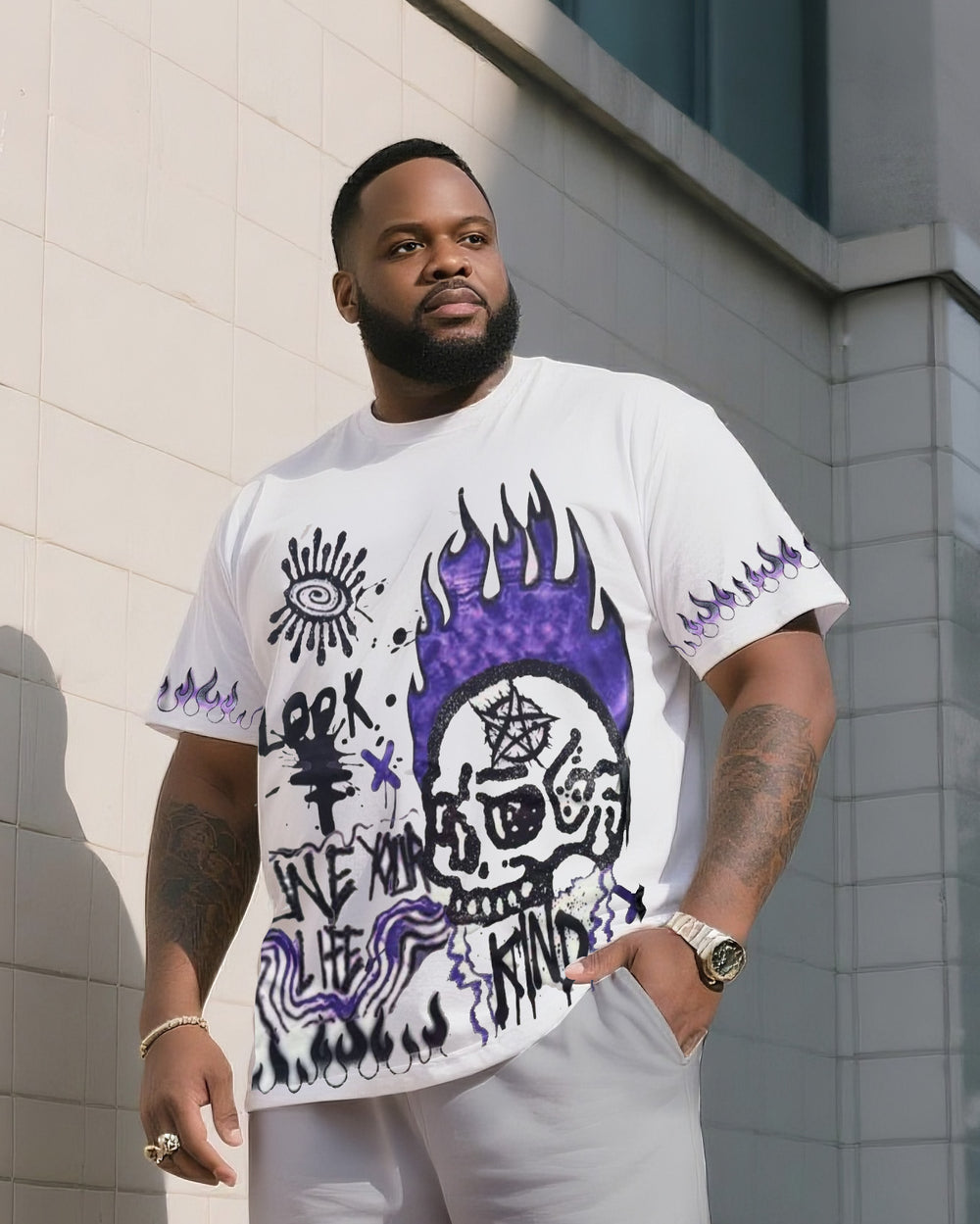 Big & Tall Men's Street Fashion Skull DAY Graffiti Print Crewneck T-Shirt Shorts Suit