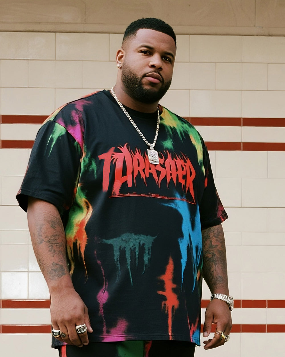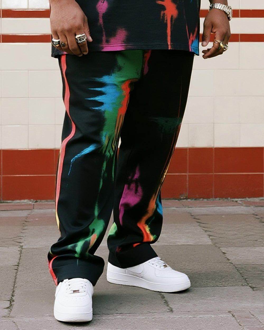 Big & Tall Men's Street Fashion Tie-dye Personality Graffiti-Short Sleeve Pants Suit