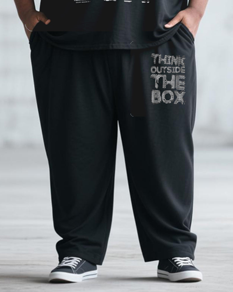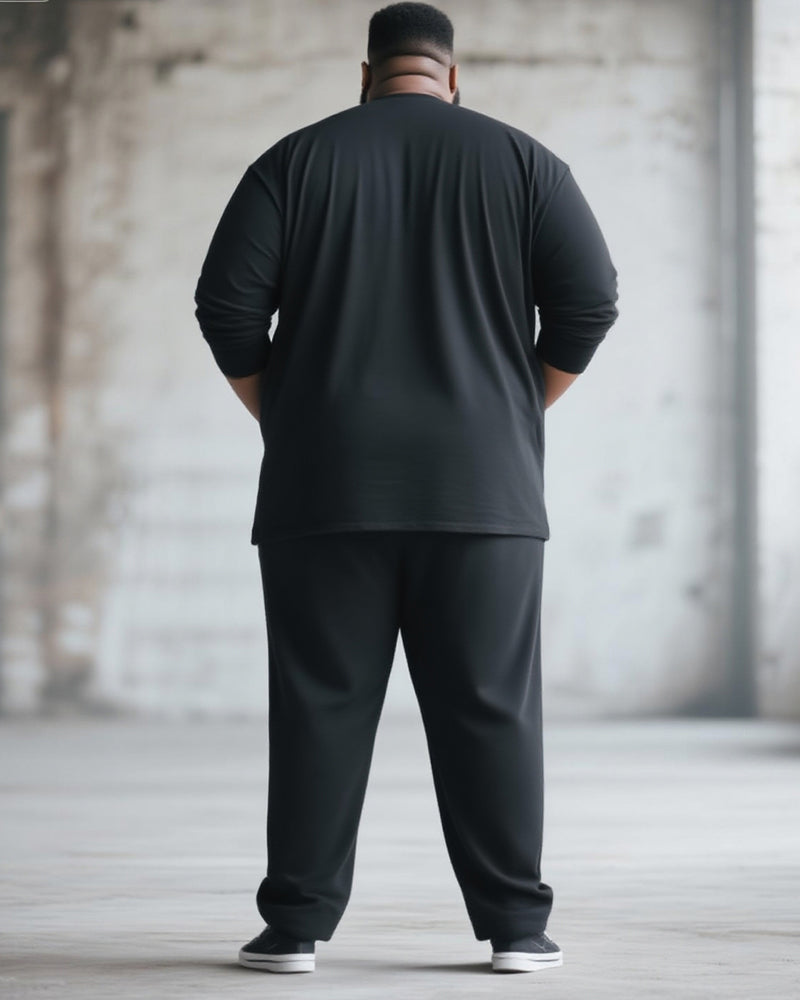 Big & Tall Men's Striped Graffiti Alphabet Print Long Sleeve T-Shirt Trousers Suit