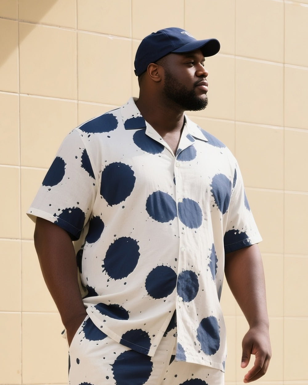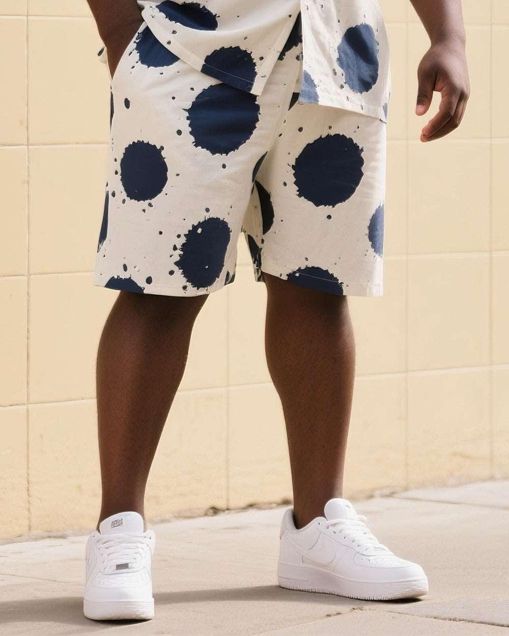 Big & Tall Men's Summer Daily Casual Blue Polo Dot Short Sleeve Shirt Shorts Suit