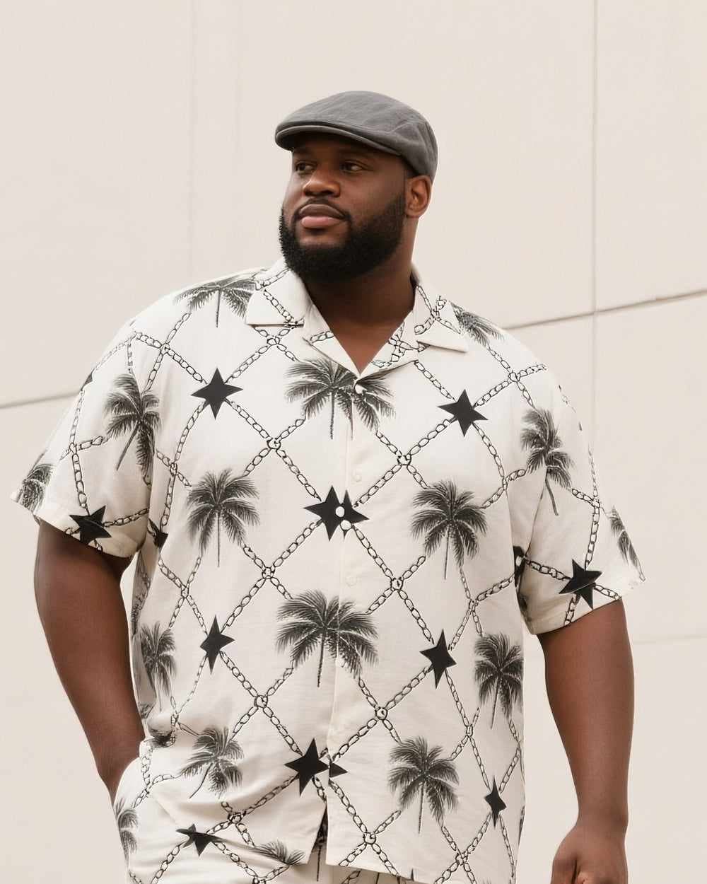 Big & Tall Men's Summer Daily Casual Diamond Cut Palm Leaf/Broken Four-Corner Star Mans Shirt Shorts Suit