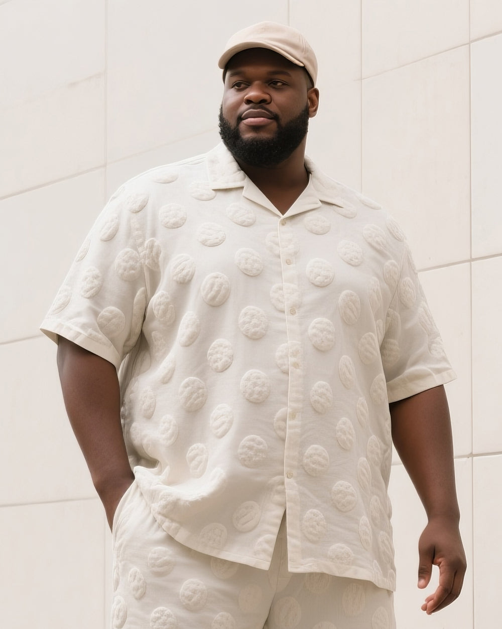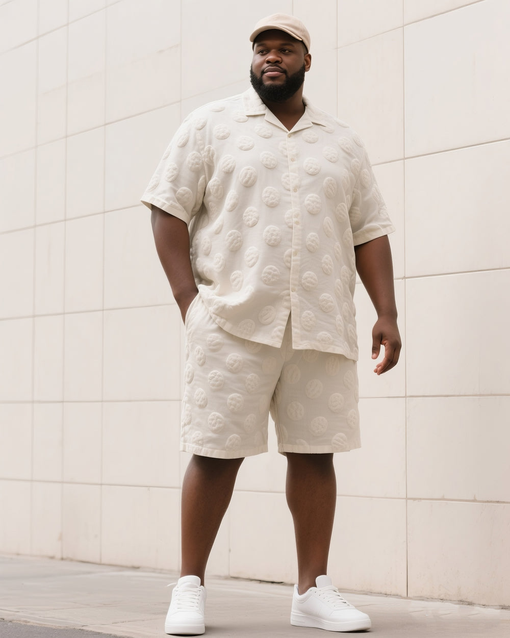 Big & Tall Men's Summer Daily Leisure Dot 3D Steel Print Short Sleeve Shirt Shorts Suit