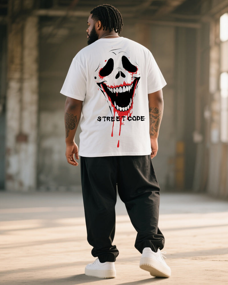 Big & Tall Men's THUG LIFE Skull Graffiti Print T-Shirt Trousers Suit