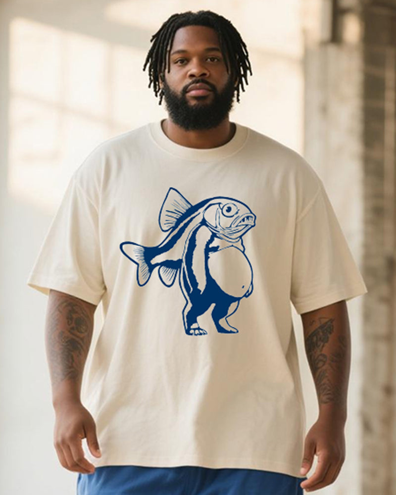 Big & Tall Men's Trippi Troppi Hand-Painted Printed Round Neck Short Sleeve T-Shirt Shorts Suit
