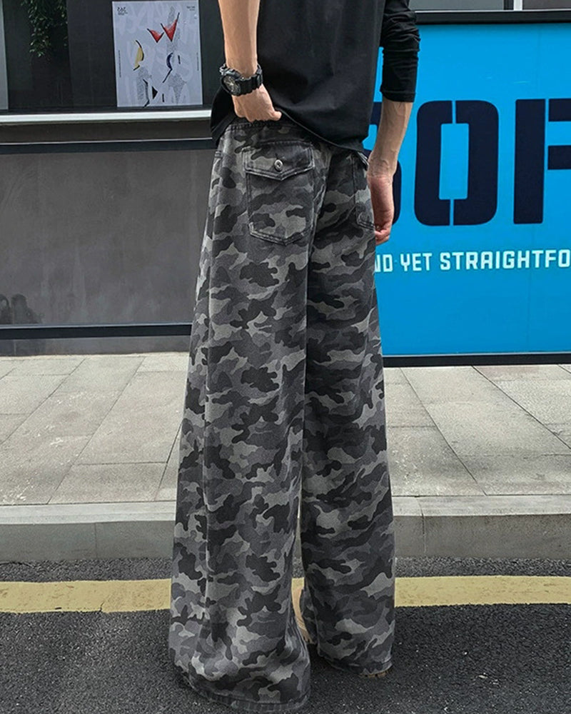 Big & Tall Men's Vintage Camouflage Jeans Loose Pants M-5XL