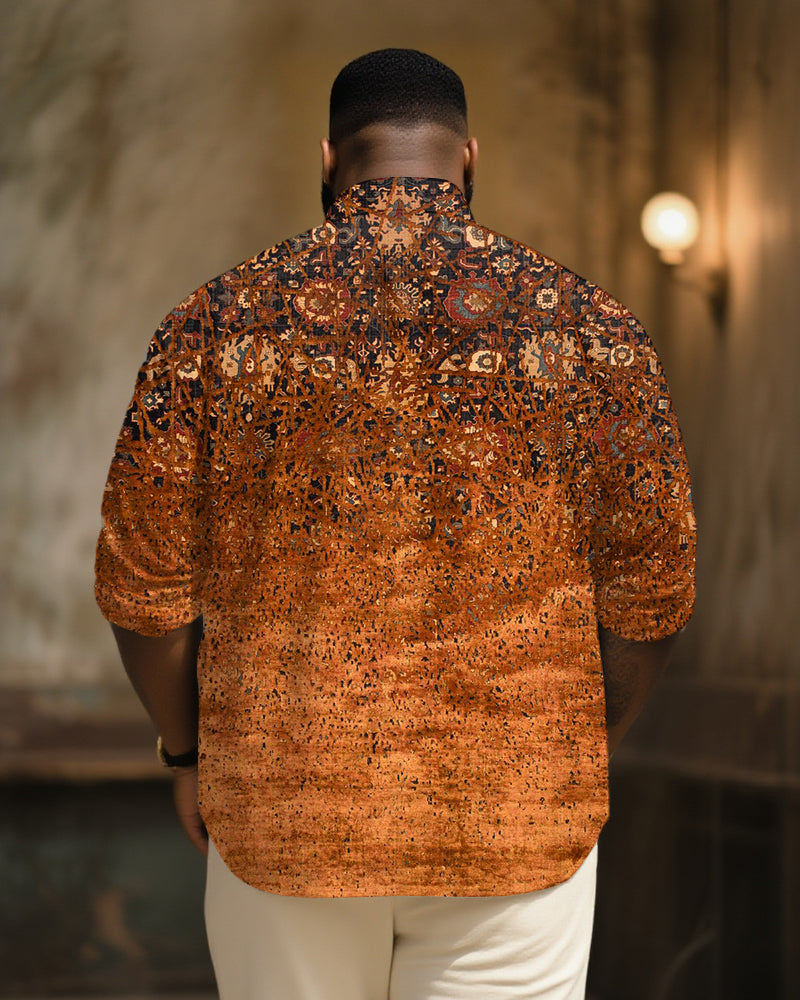 Big & Tall Men's Vintage Ethnic Art Print Long Sleeve Bamboo Hemp Texture Shirt