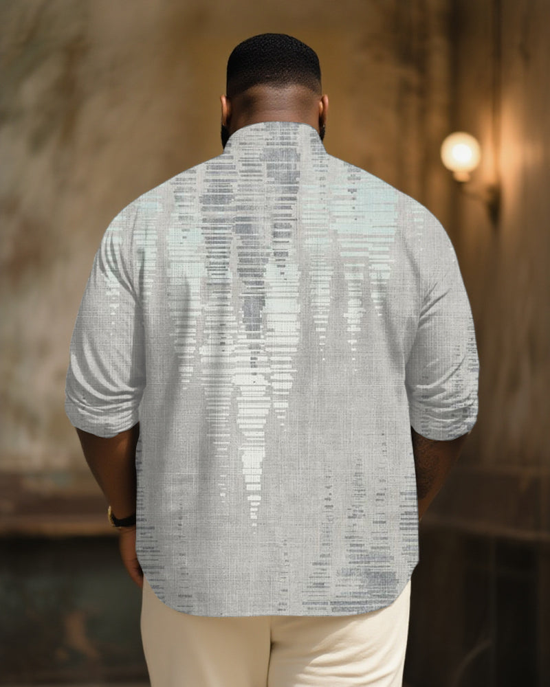 Big & Tall Men's Vintage Grey Art Print Long Sleeve Bamboo Hemp Texture Shirt