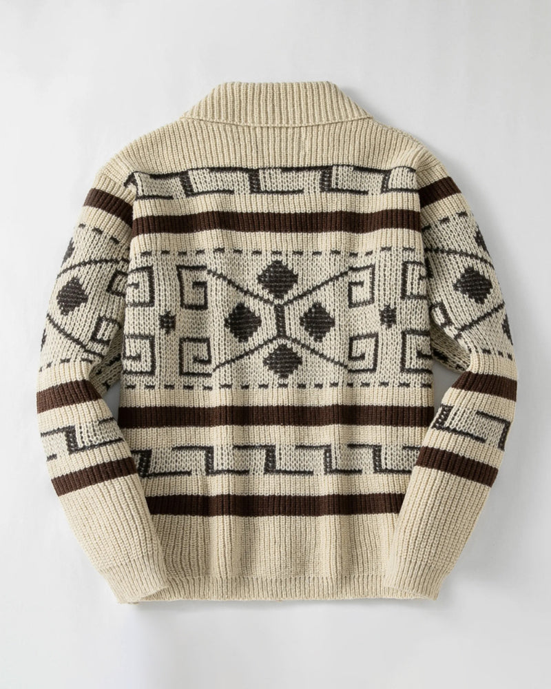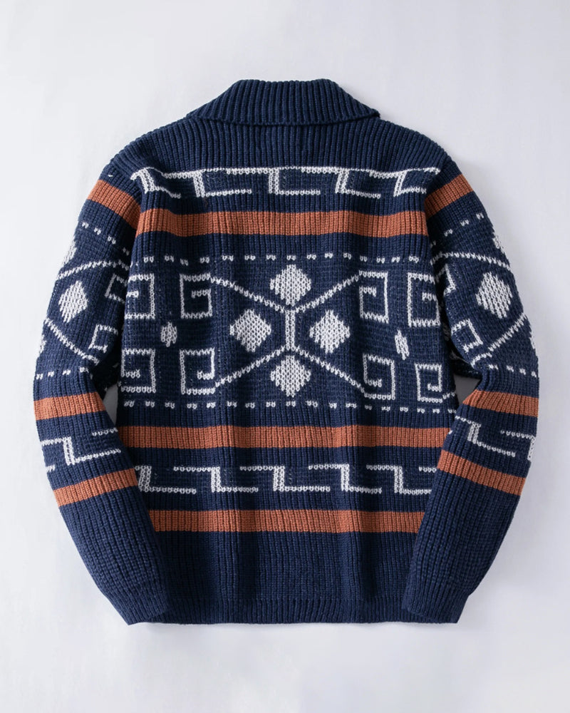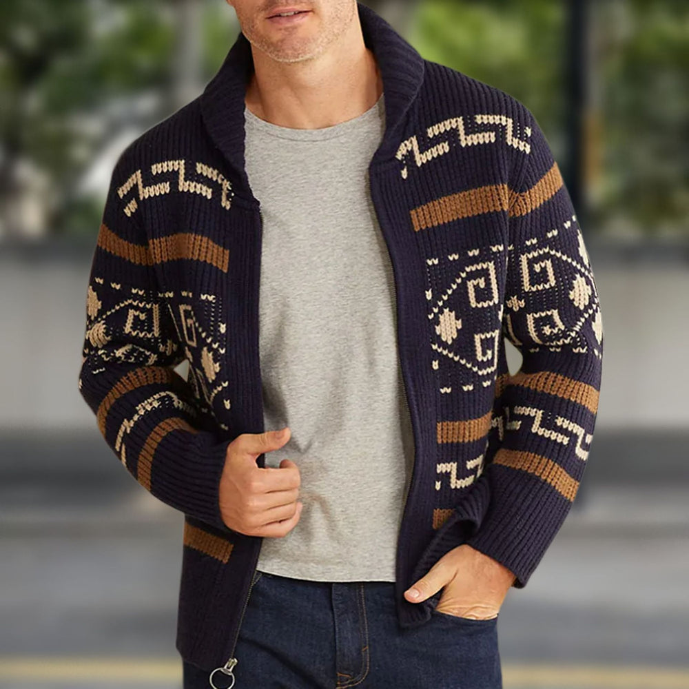 Big & Tall Men's Vintage Jacquard Laps Long Sleeve Cardigan Jacket M-3XL