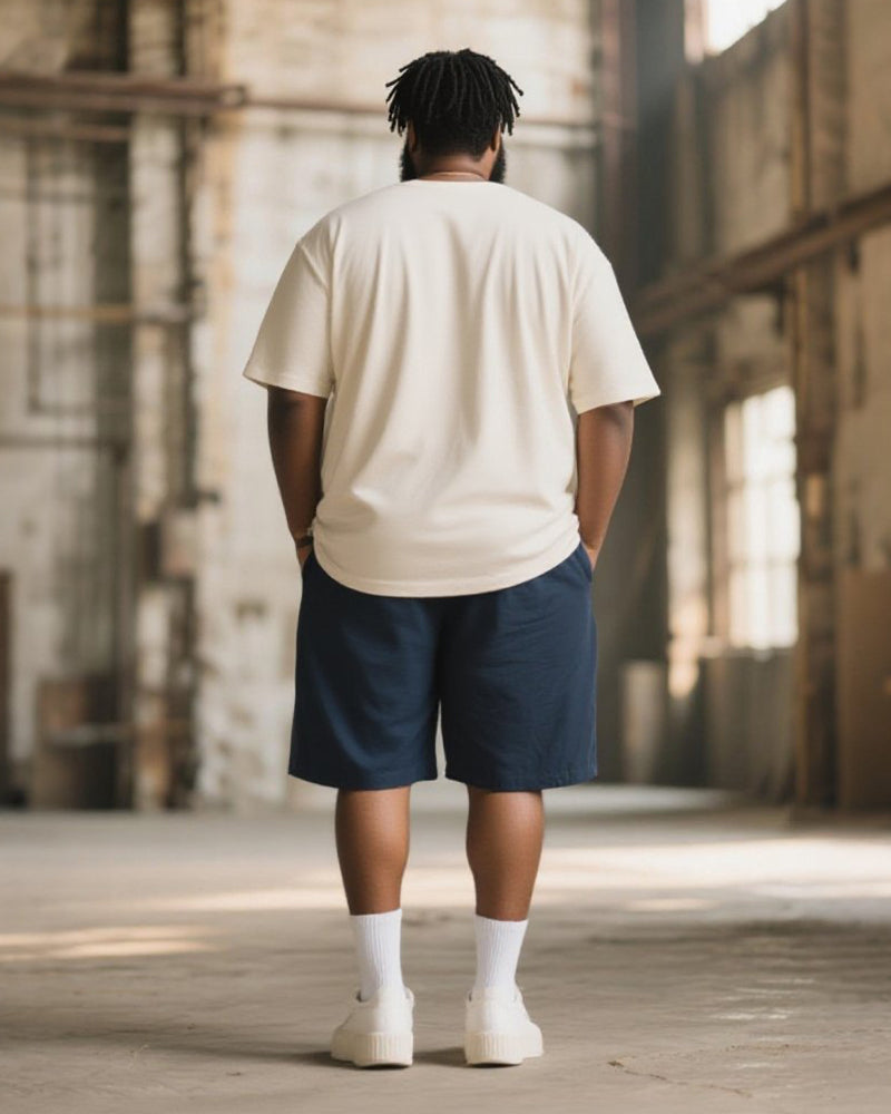 Big & Tall Men's Vintage Japan Tokyo Architectural Printed Round Neck Short Sleeve T-Shirt Shorts Suit