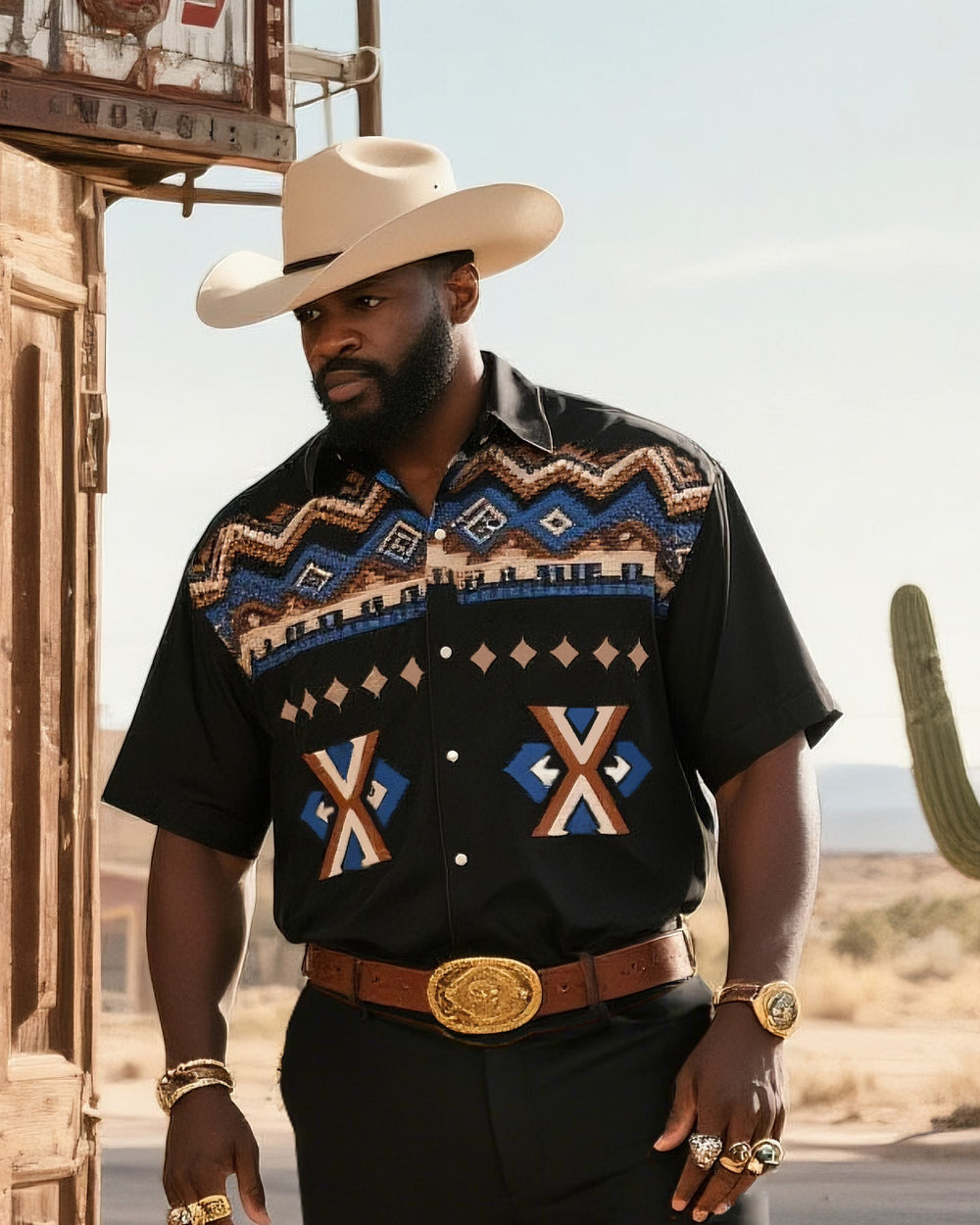 Big & Tall Men's Western Navajo Geometric Print Short Sleeve Shirt Pants Suit