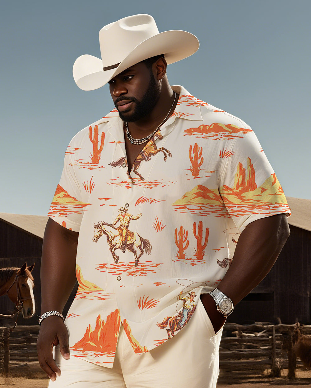 Big & Tall Men's Western Style Casual Western Style Print-creamy-white Short Sleeve Shirt Pants Suit