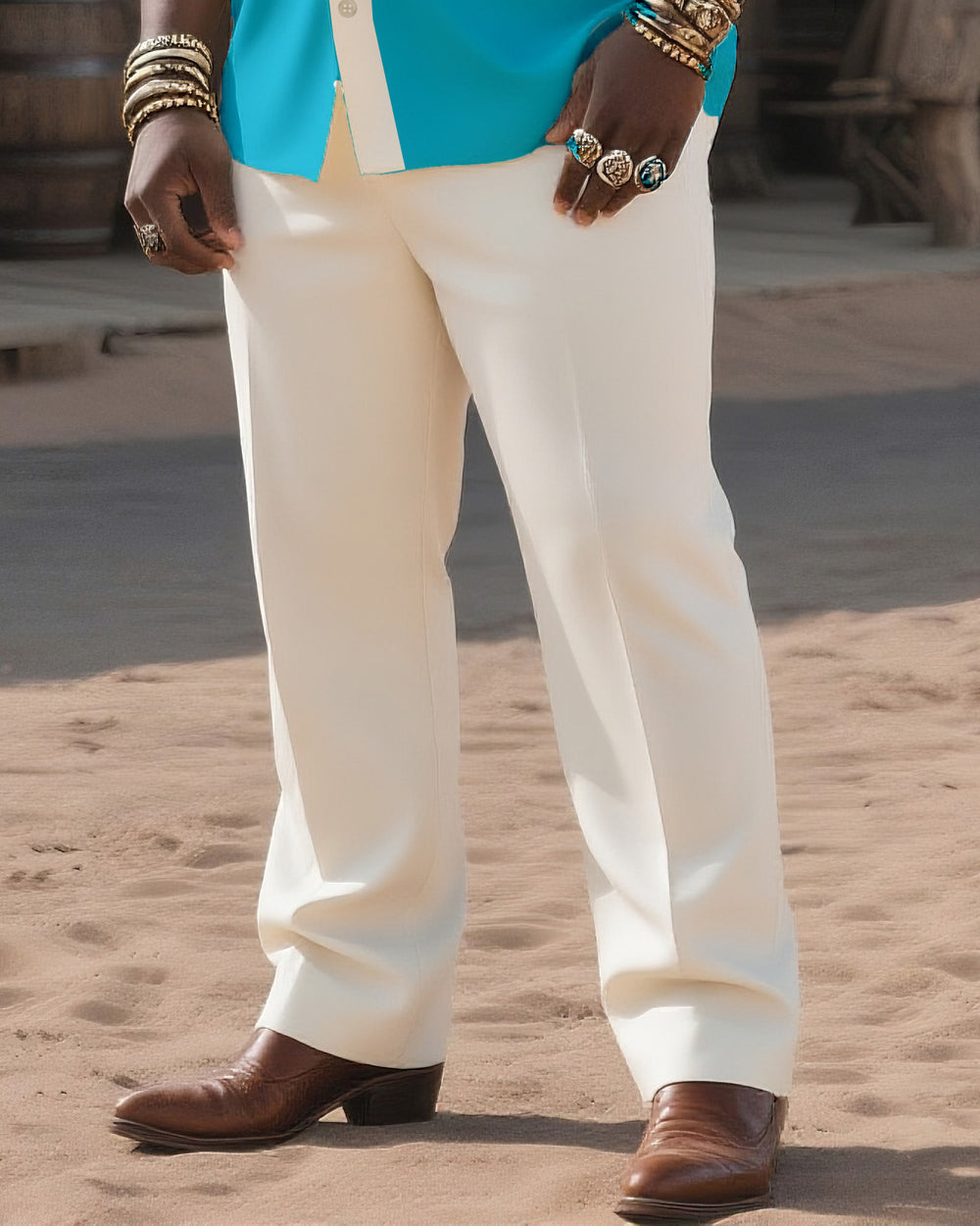 Big & Tall Men's Western Style Color Matching Casual Cat Printing-short Sleeve Shirt Pants Suit