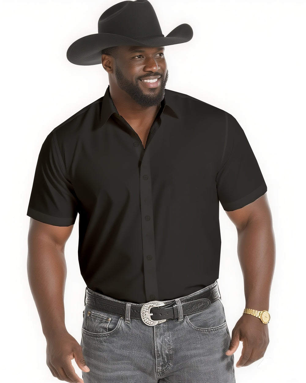 Big & Tall Men's Western Style Daily Casual Back Maria Textured Black Short Sleeve Shirt