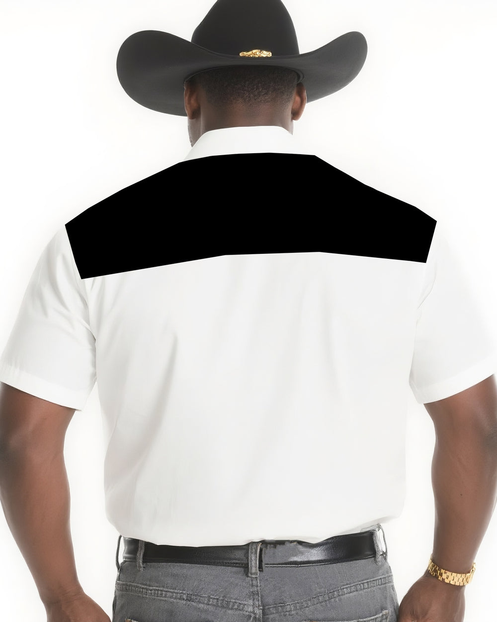 Big & Tall Men's Western-style White Black Floral Texture Short-sleeved Shirt