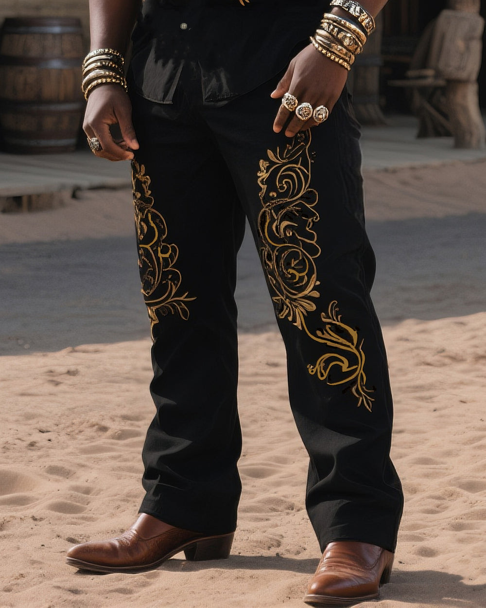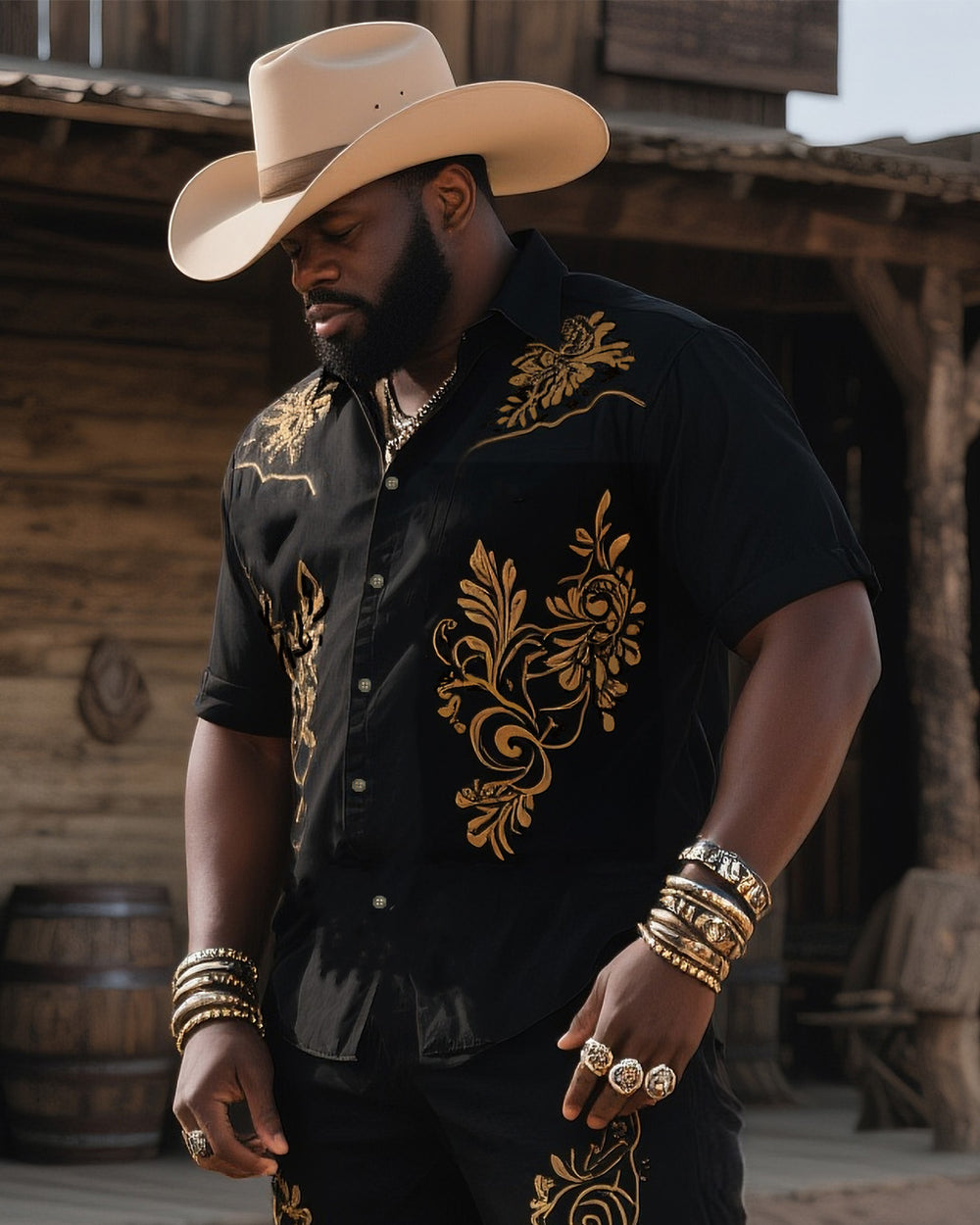 Big & Tall Men's Western Wind Desert Thorns Print Short Sleeve Shirt Trousers Suit