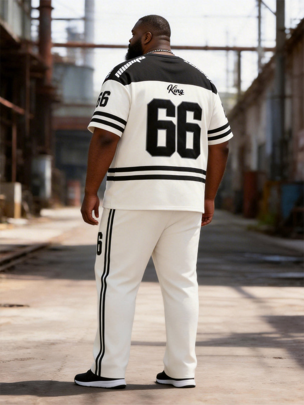 Big & Tall Men's White And Black Colorblock 66 Printed T-Shirt Pants Set