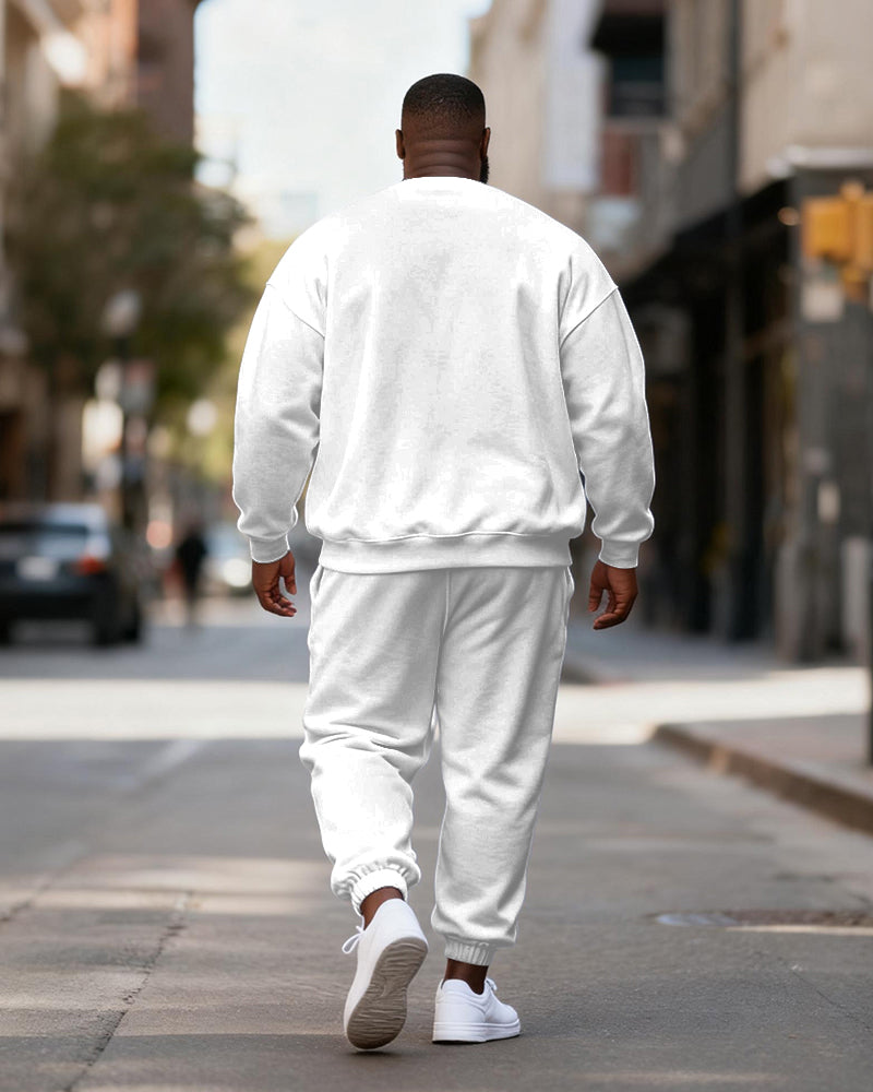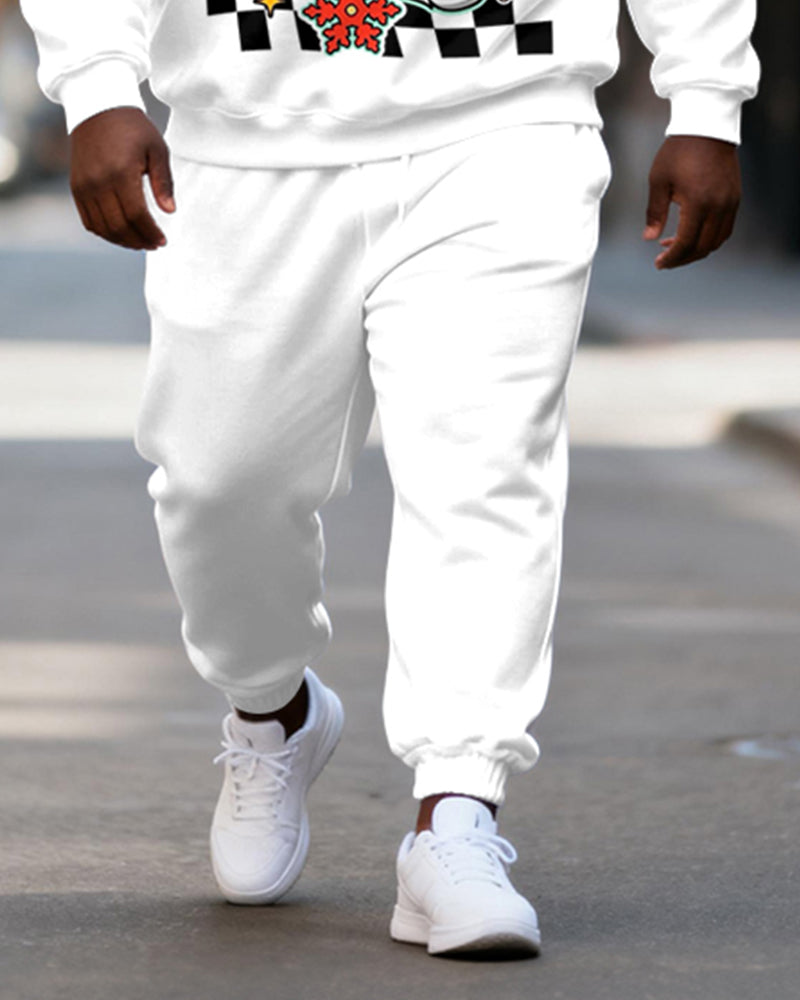 Big & Tall Men's White Checkerboard Santa Claus "Merry Christmas" Printed Crewneck Sweat Set