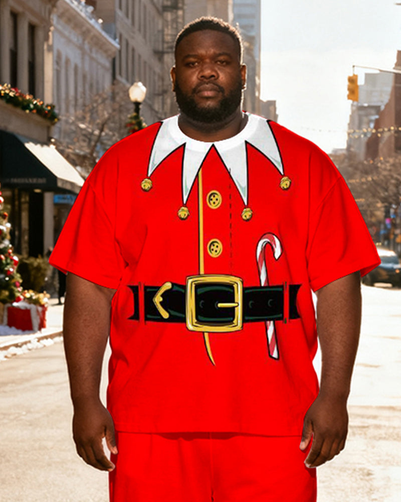 Big & Tall Men's White Santa Claus Beard "Ho Ho Ho" Printed T-Shirt Pants Set