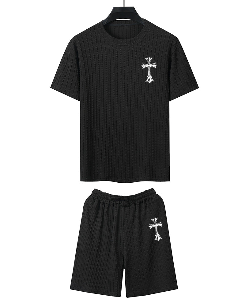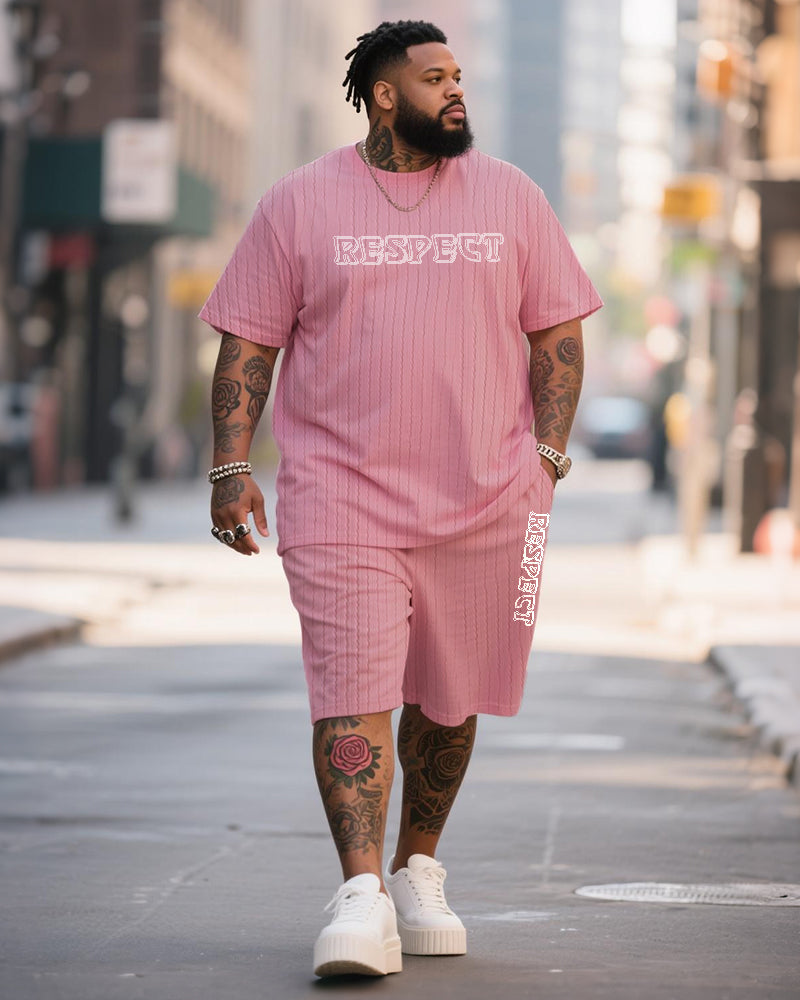 Big & Tall Men's Wine Red Simple Letter Twist Knit Crew Neck Short Sleeve T-shirt Shorts Suit