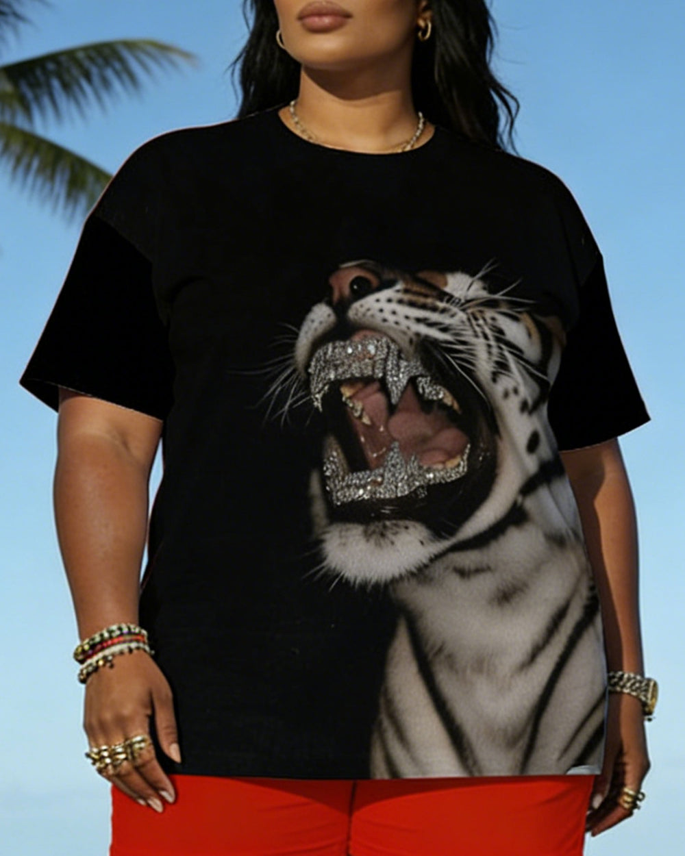 Big & Tall Spring And Summer New Valentine's Day Dating Party Party Holiday 3D Tiger Pattern Printed Crewneck Short Sleeve T-Shirt Shorts Set Couple Dress