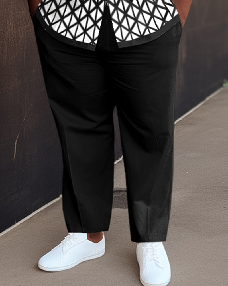 This men's walking set features irregular diamond prints that break the monotony. It cleverly modifies the body shape while the various large-size selections meet the needs of different men. Whether it is casual time or formal occasions, it can be easily controlled and show multifaceted charm.