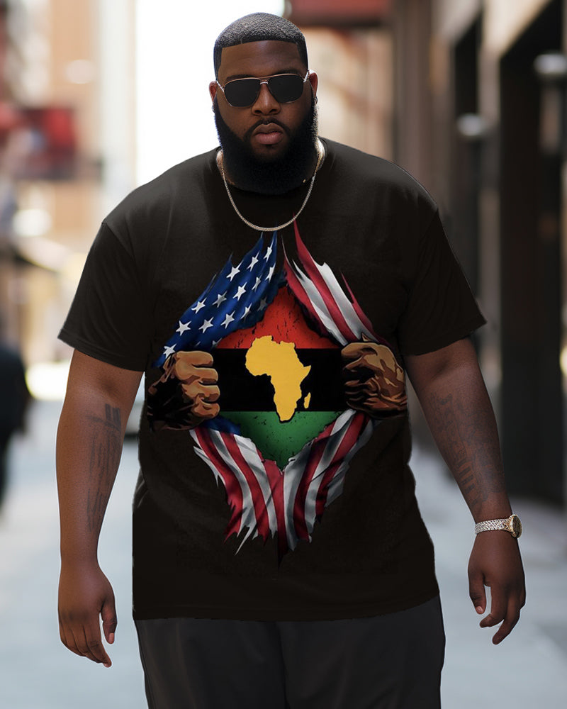 Black Ethnic Style Map American Printed Large Men's Short Sleeved T-Shirt