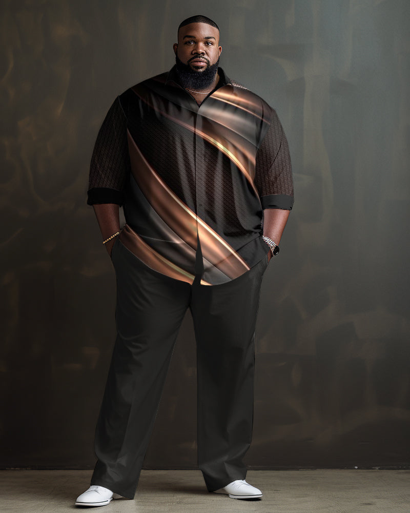 This men's walking set is simple and stylish. It adopts exquisite gold line printing that creates a effect, adding a modern and romantic atmosphere. Its overall design is simple and generous, which can be used on formal occasions and show fashion style in daily leisure.