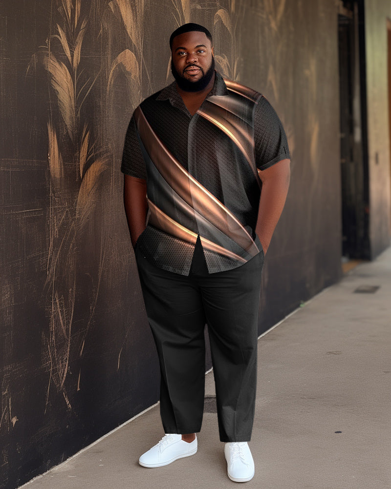 This men’s walking set features a relaxed fit that prioritizes comfort. This ensemble is in a sleek black style adorned with elegant gold line prints on the shirt. The classic design makes it ideal for various occasions, effortlessly transitioning from casual outings to more formal settings. With multiple size options available, this set ensures comfort for you.