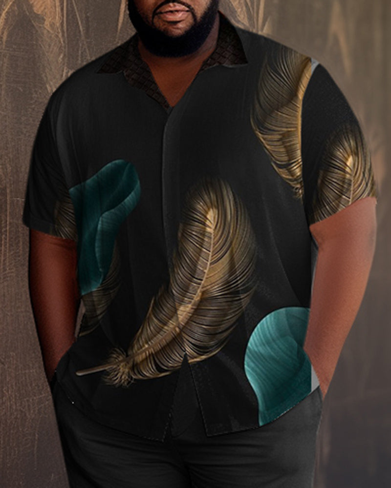 Black Men's Ombre Art Plus Size Short Sleeve Walking Set