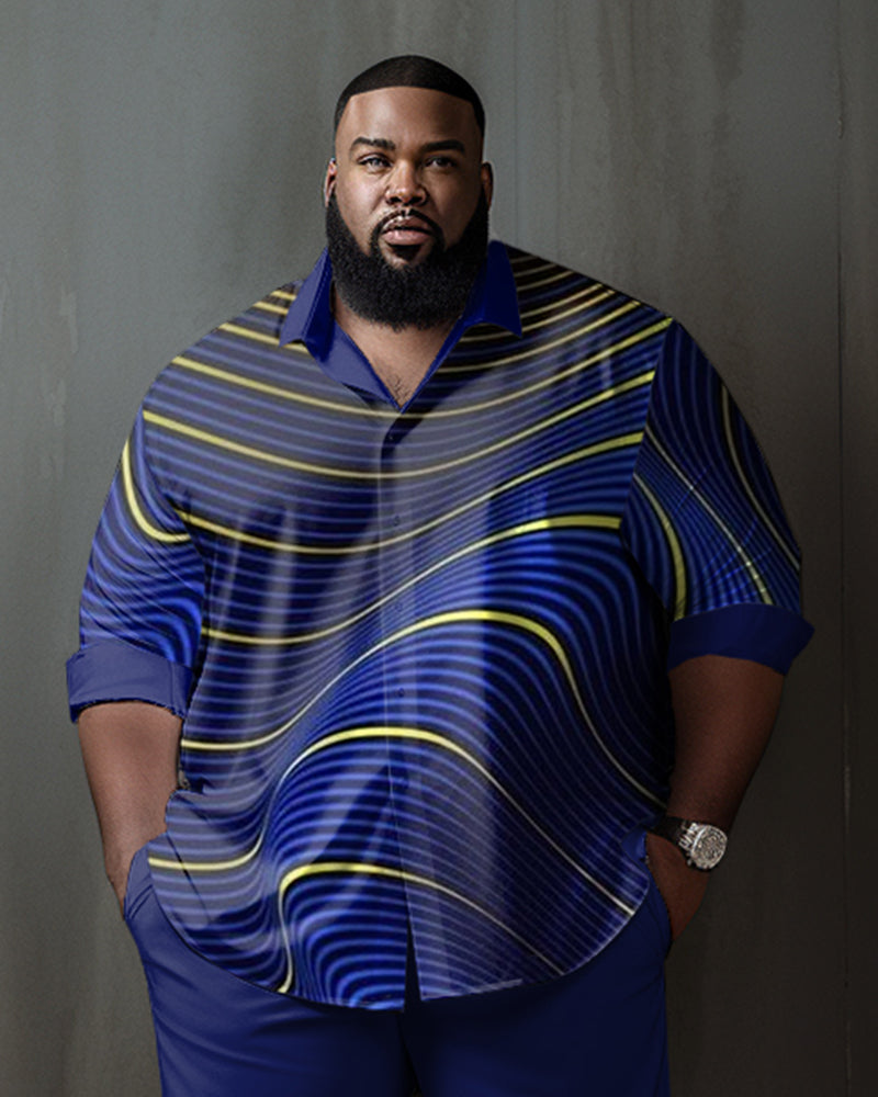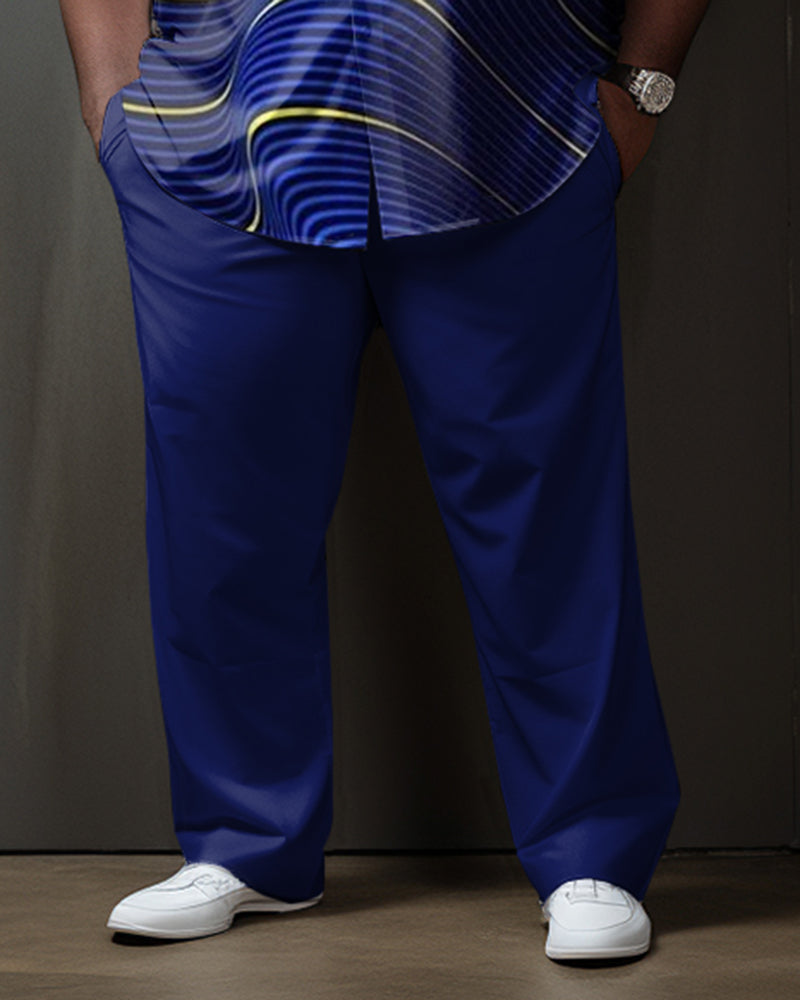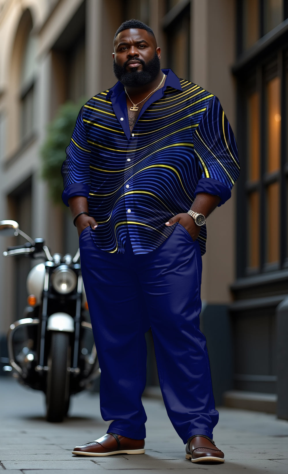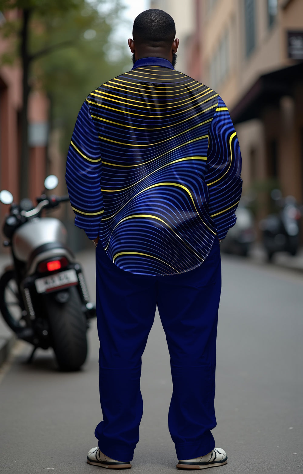 This blue set shows the unique charm of the . Printed with golden lines, this set is more refined and three-dimensional. The loose cut brings excellent comfort and the large size design is particularly friendly for big guys. This set can easily cope with different occasions, allowing you to show confidence