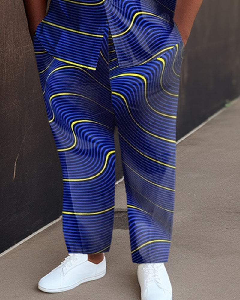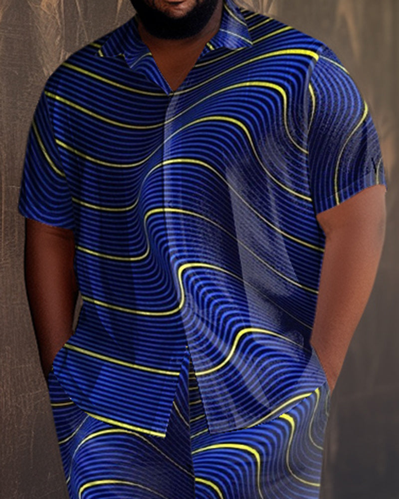 Blue Men's Ombre Art Plus Size Short Sleeve Walking Set
