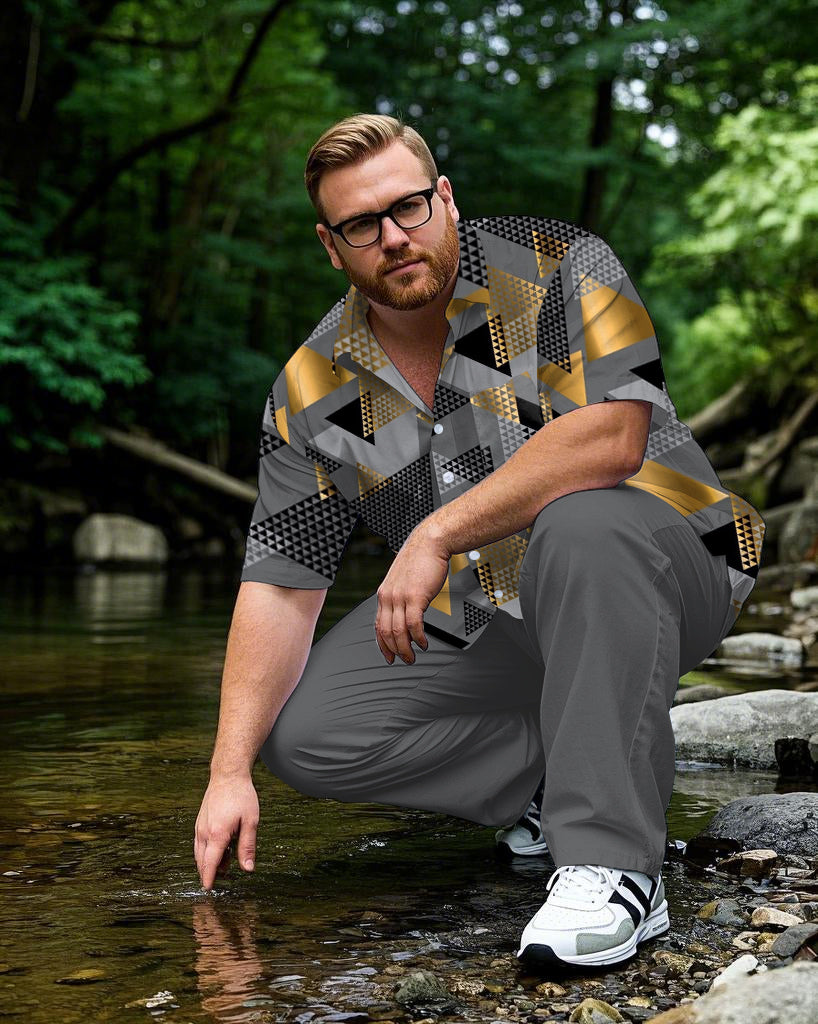 Business Geometric Gray Shirt Trousers Suit Men's Plus Size