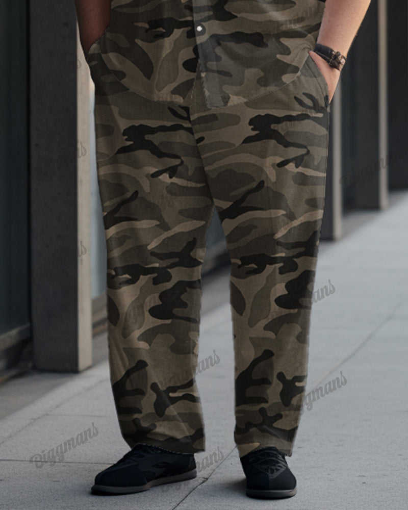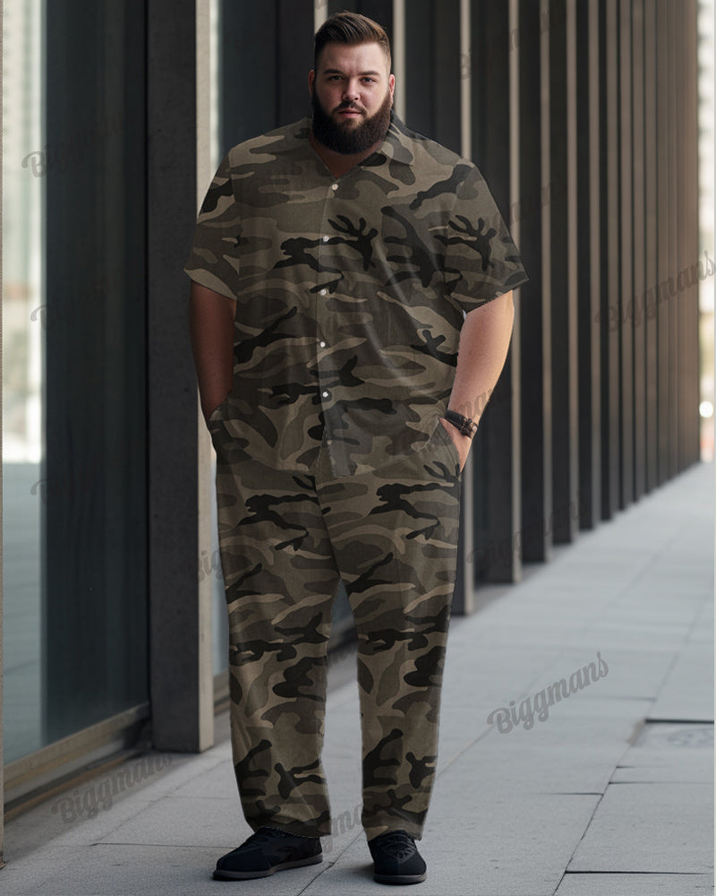 Camouflage Print Short Sleeve Shirt Trousers Suit Men's Plus Size